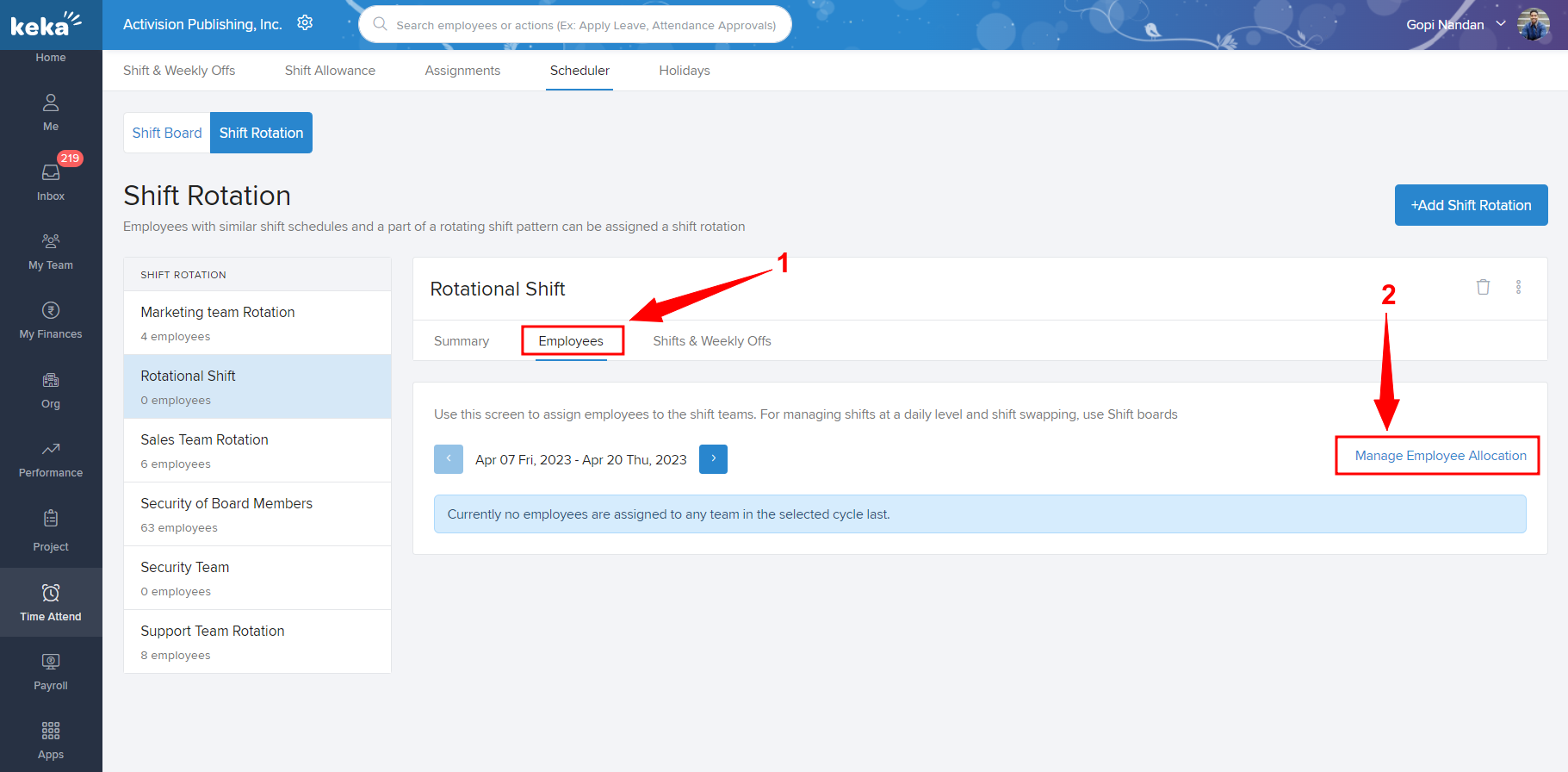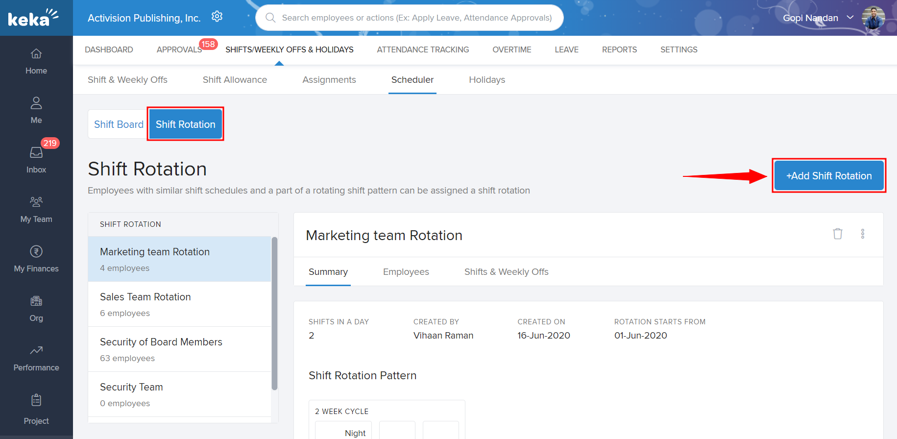 Shift Rotation: This feature comes in handy when employees are required to work different shifts every week. With the shift rotation tool, you can configure multiple shift assignments for the employees that changes automatically based on your requirement.