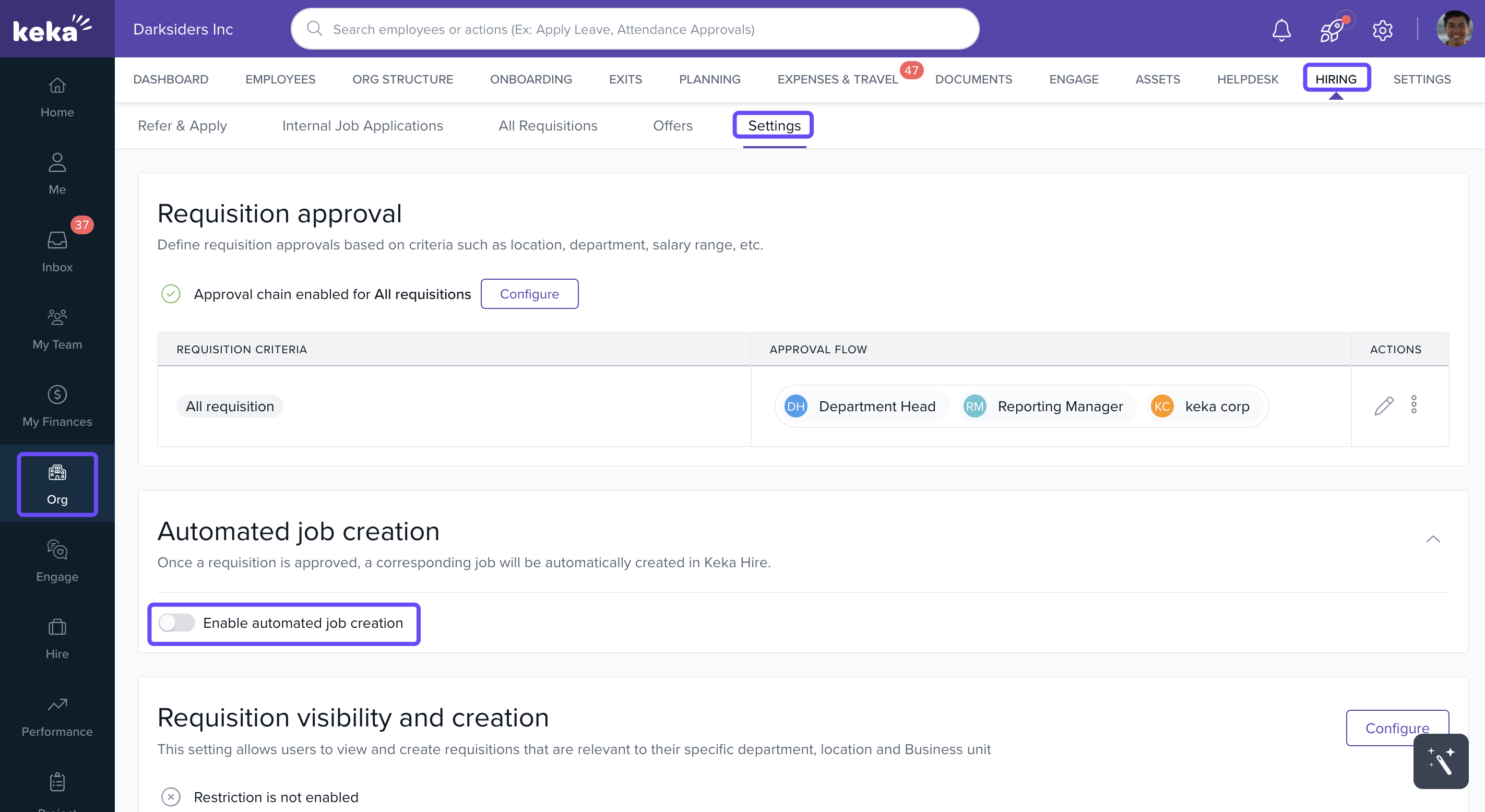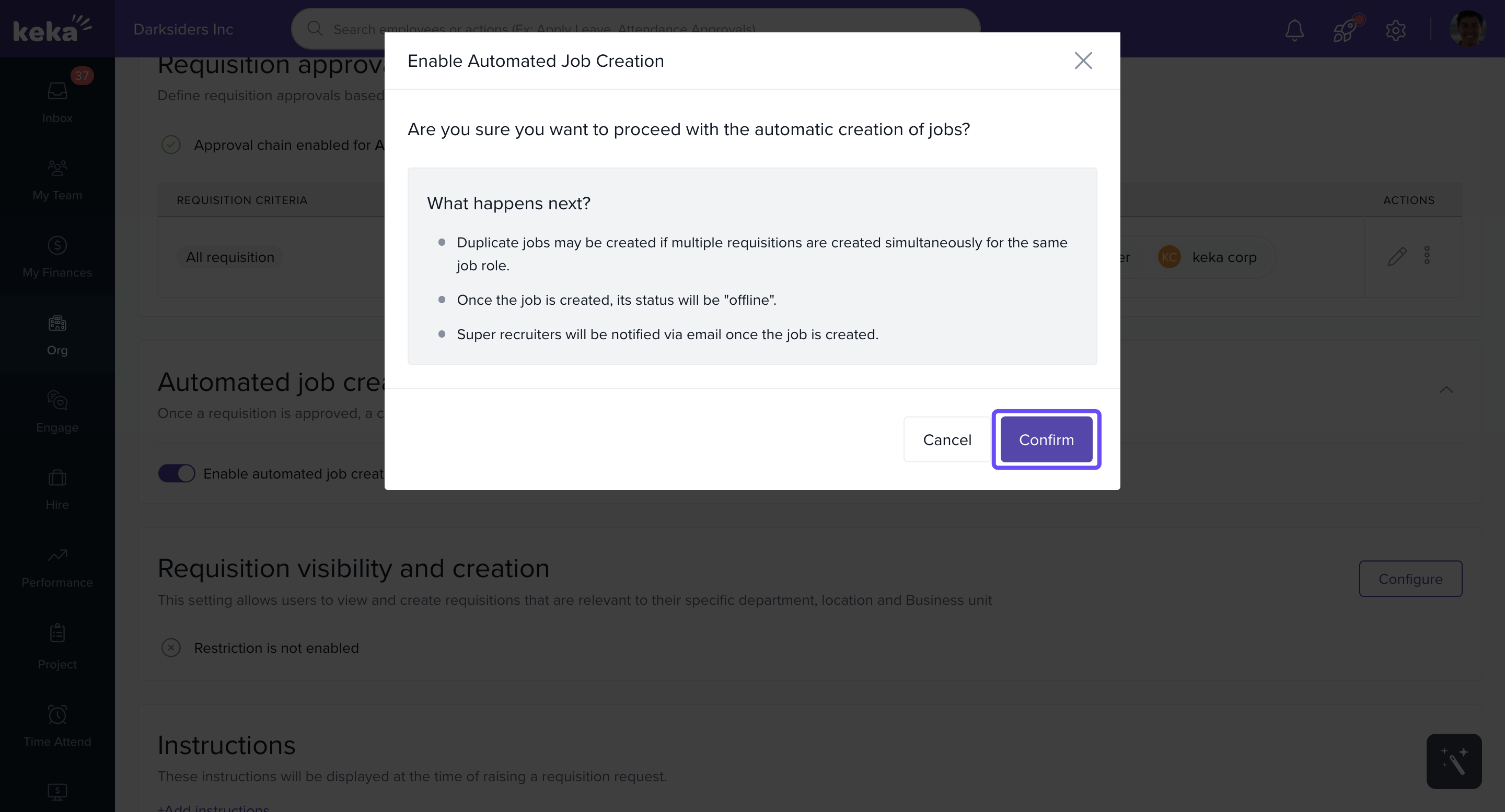 Keka now supports automatic job creation once a hiring requisition is approved. This feature helps speed up your hiring process and reduces dependency on manual input from recruiters.
