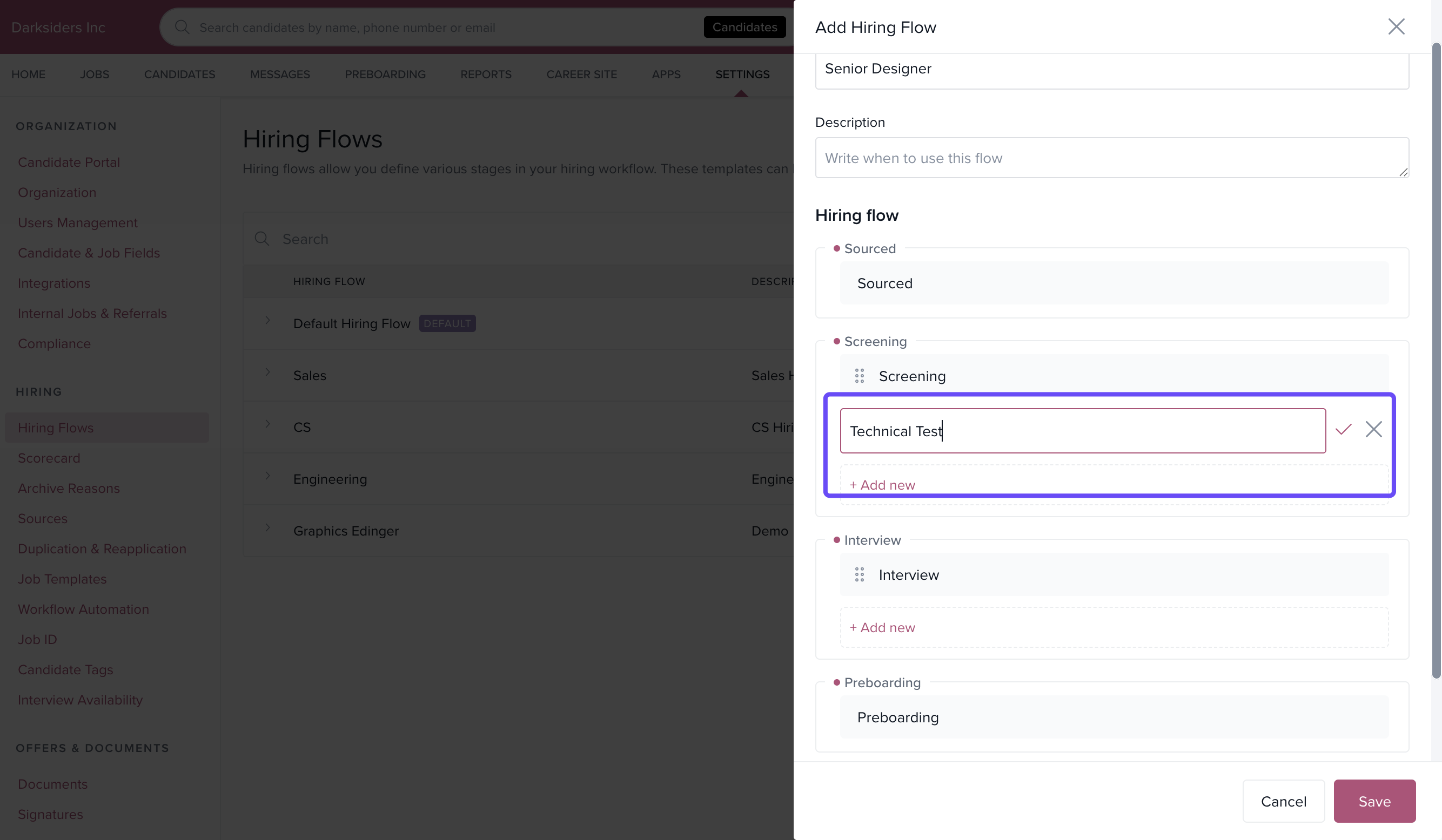 Enter a Hiring Flow Name and a brief Description.