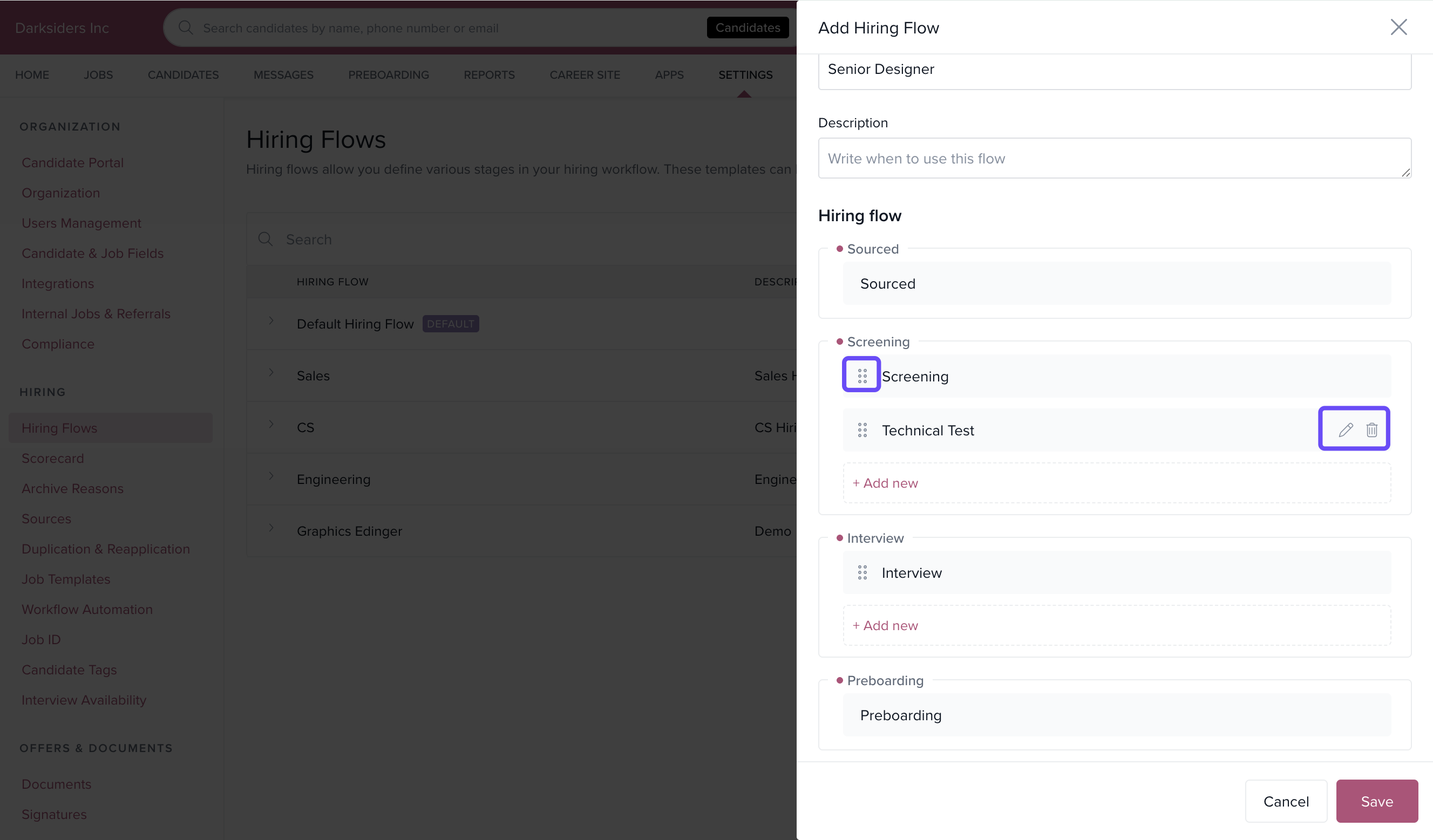 After setting all stages and making changes, click Save to create the new hiring flow.