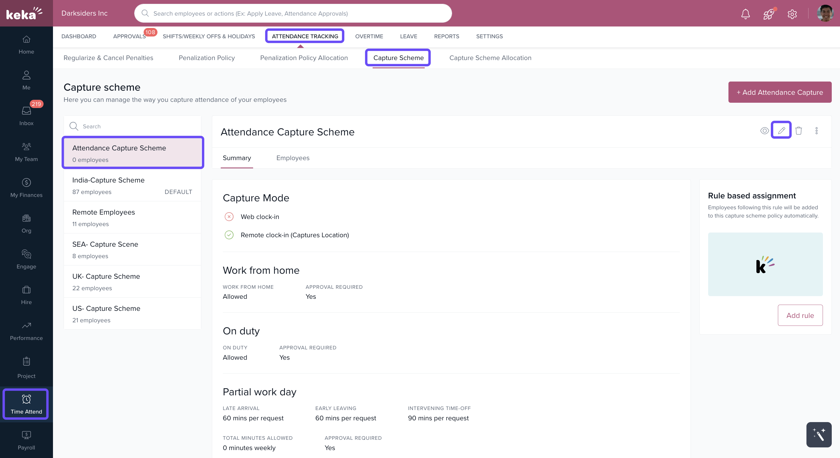 Go to the Time Attend module in your Keka dashboard.