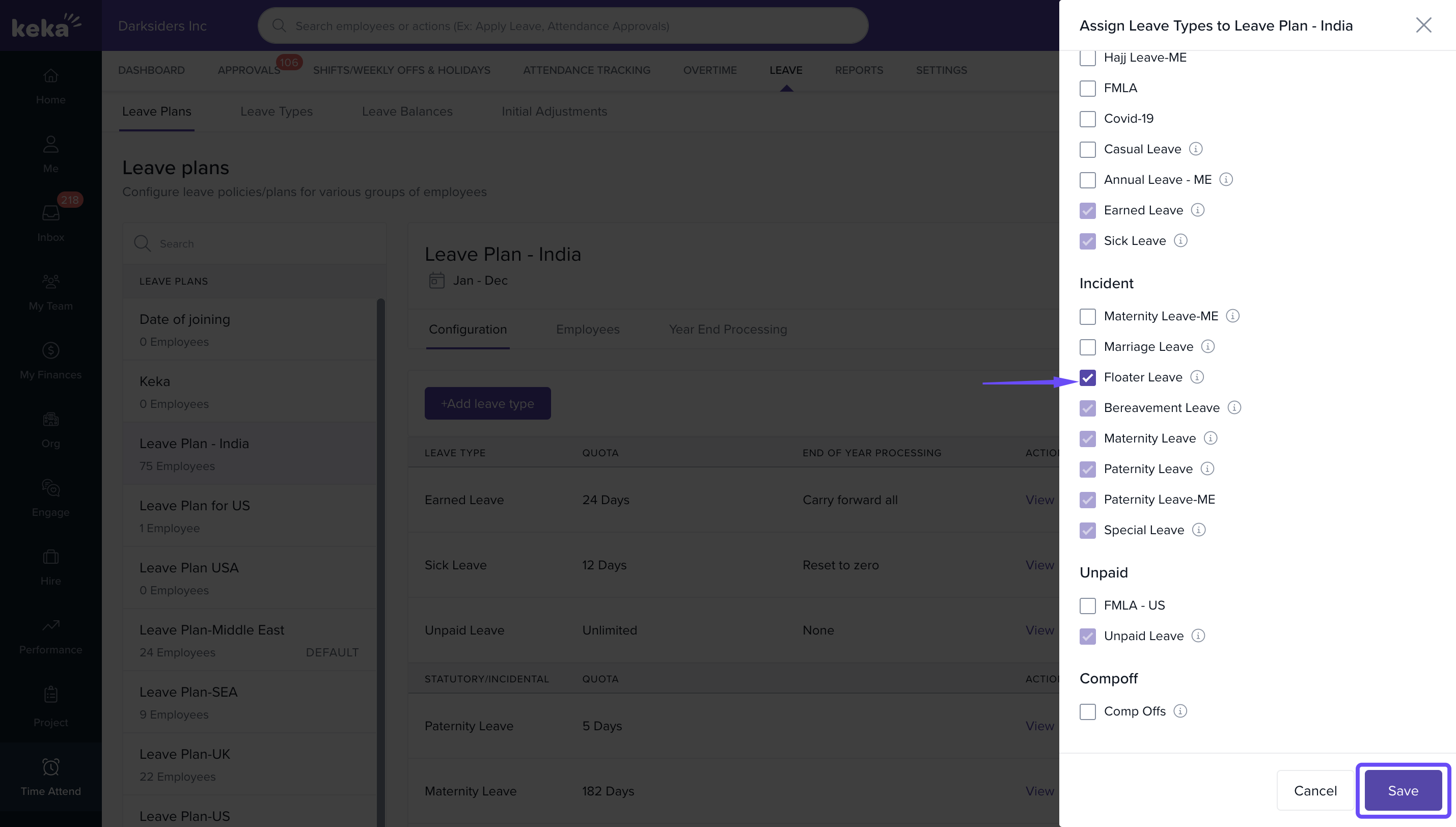 Now, the Floater Leave is added and configured to your Leave Plan.