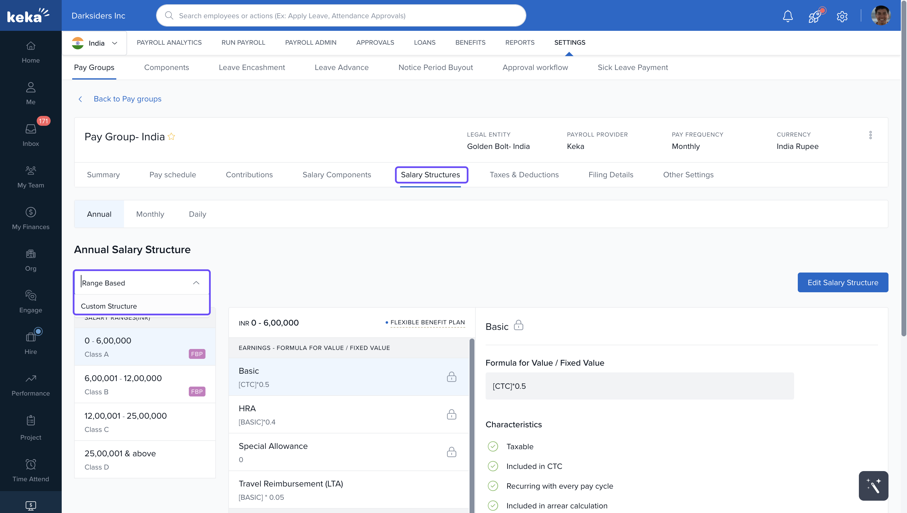 You can check both Range-Based and Custom Salary Structures added to the pay group.