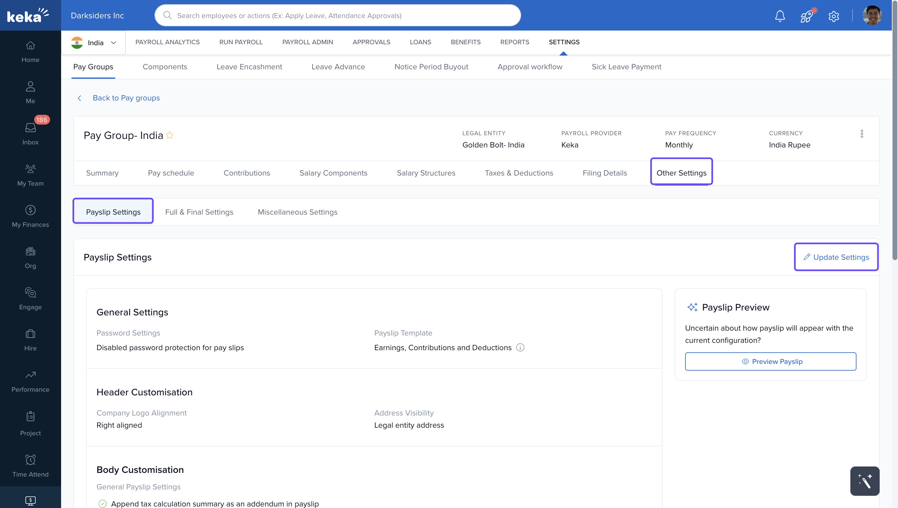 Go to Other Settings ➔ Payslip Settings, select Update Settings.
