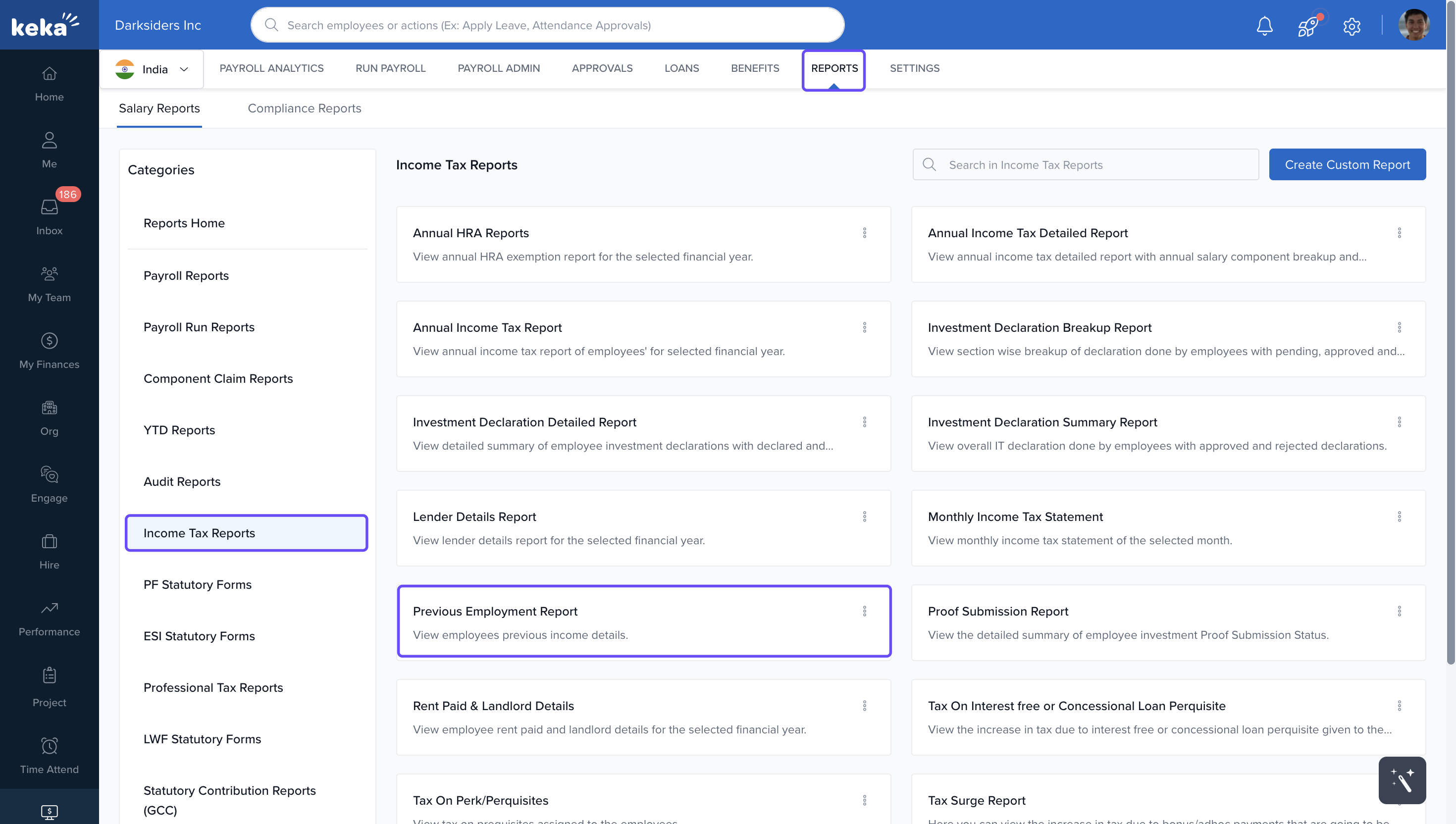 Click on Income Tax Report → Previous Employment Report.