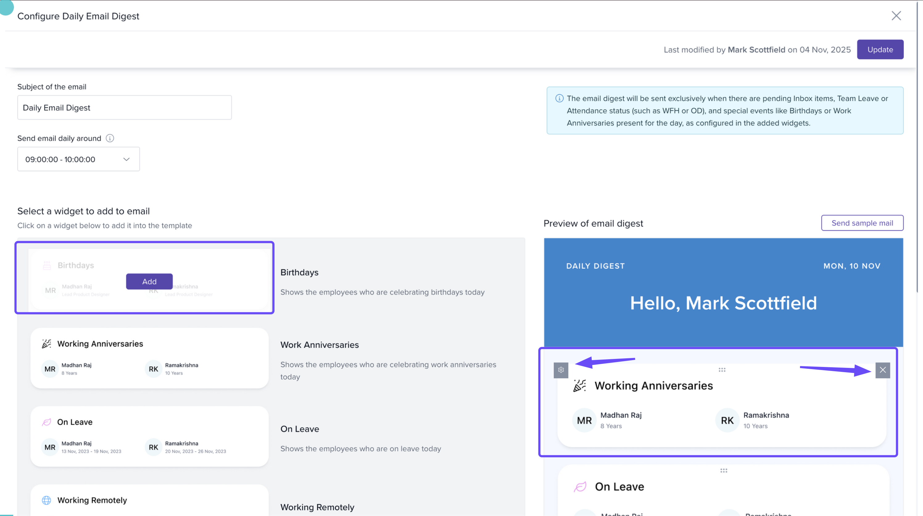 Once all updates are made and reviewed, click Update to save your customized email digest.
