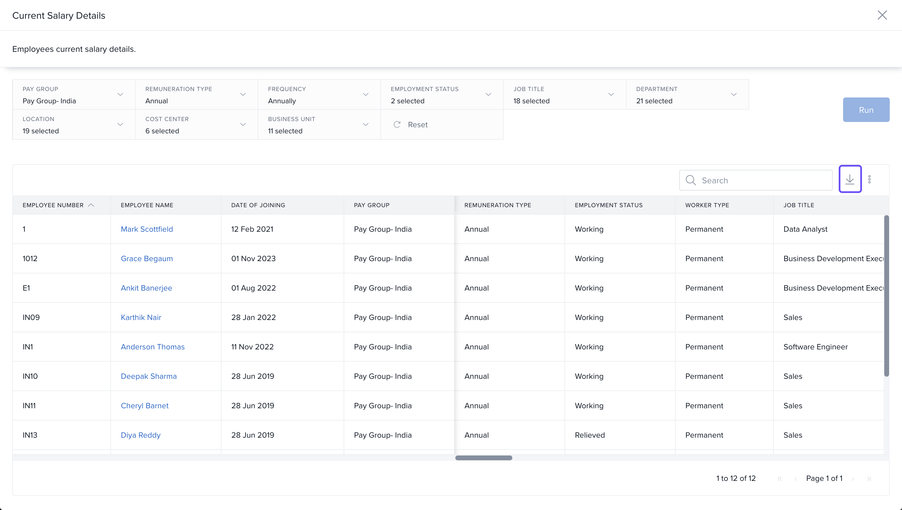 Click the Download icon to export the report.