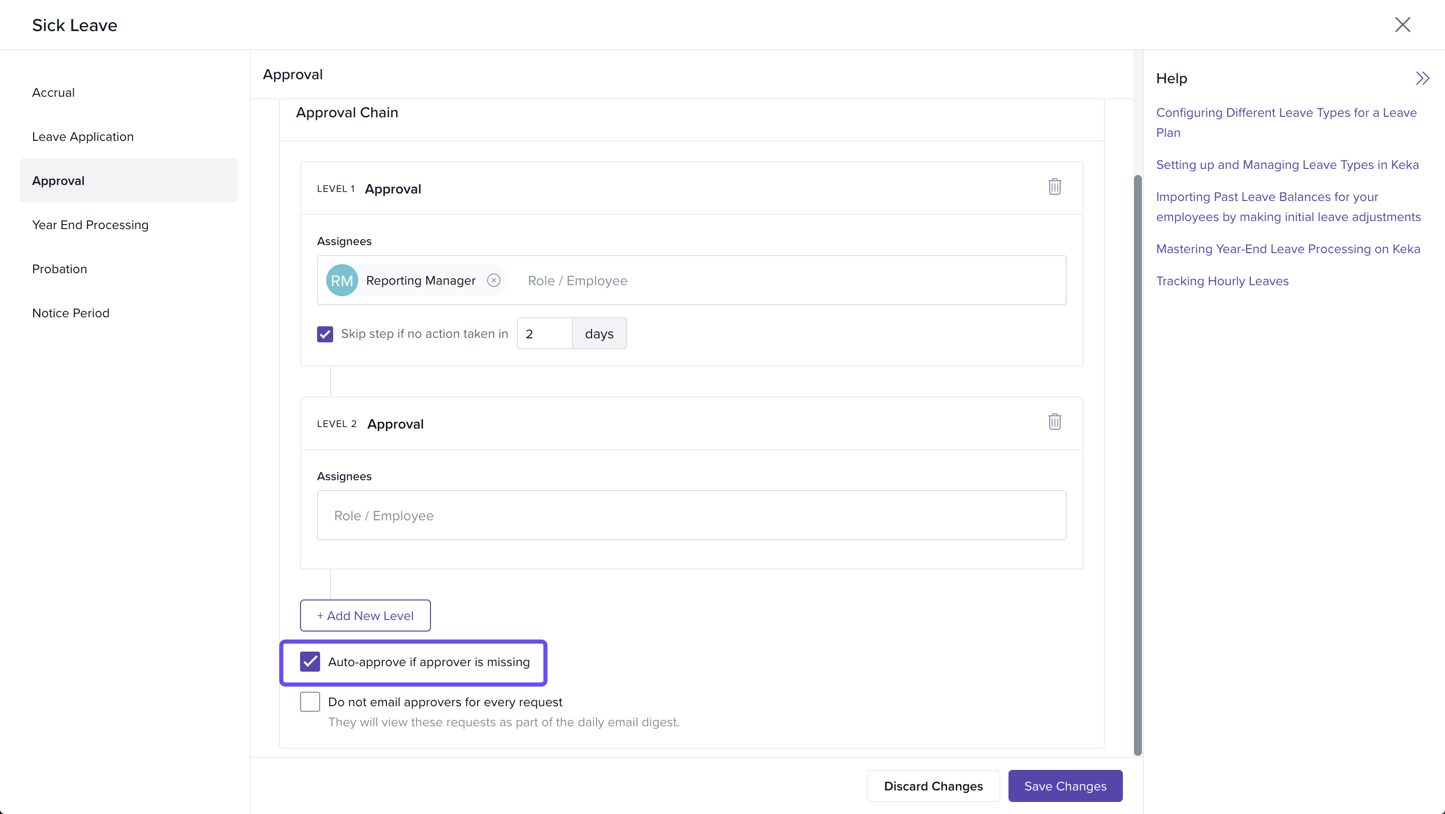 - For example, if the approver is set as Reporting Manager, but no one is assigned that role in Keka, the system will skip that approver and send the request to the next one.