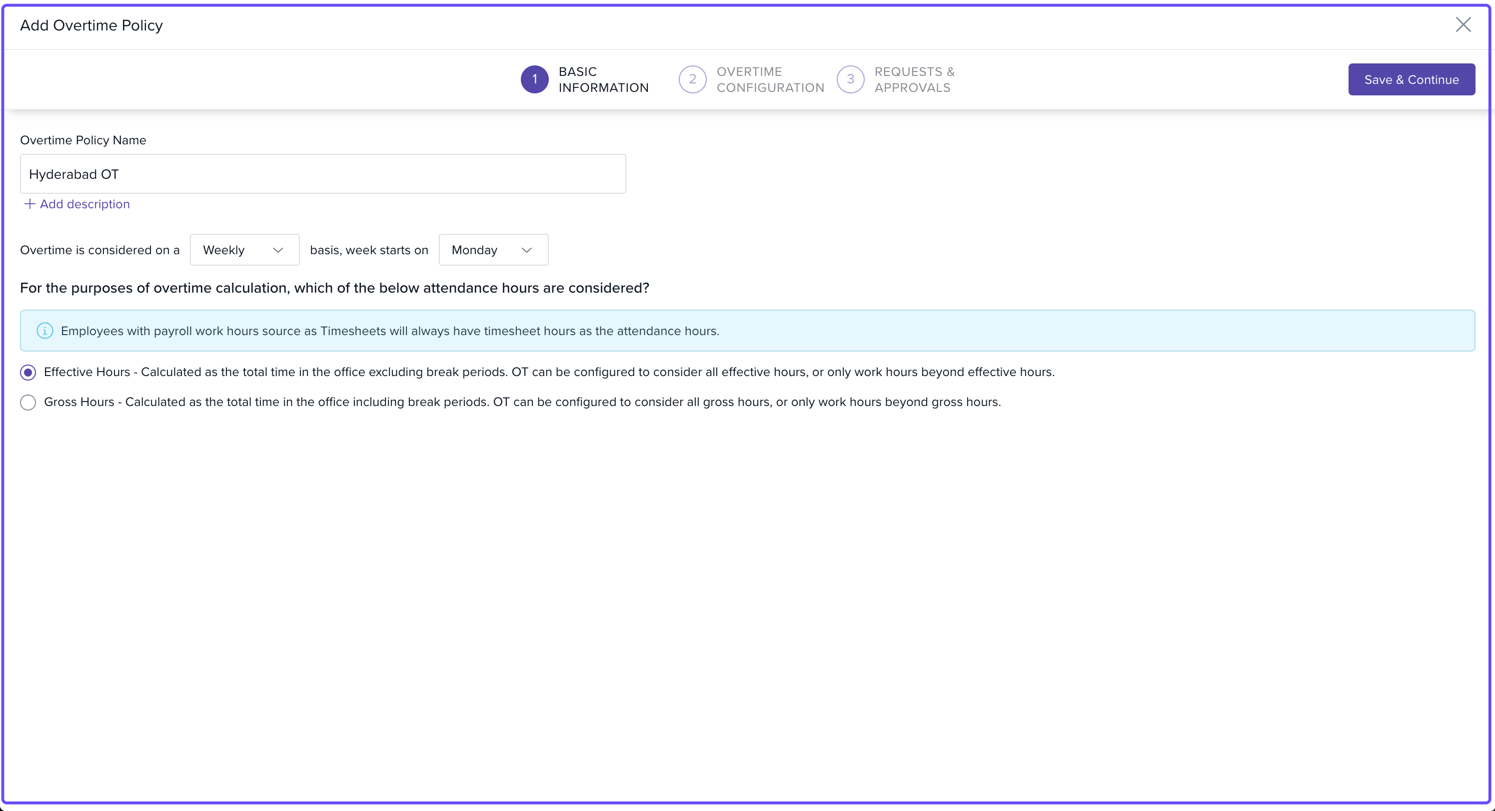 Tip: Use "Effective Hours" if you want to exclude break times from OT calculations.