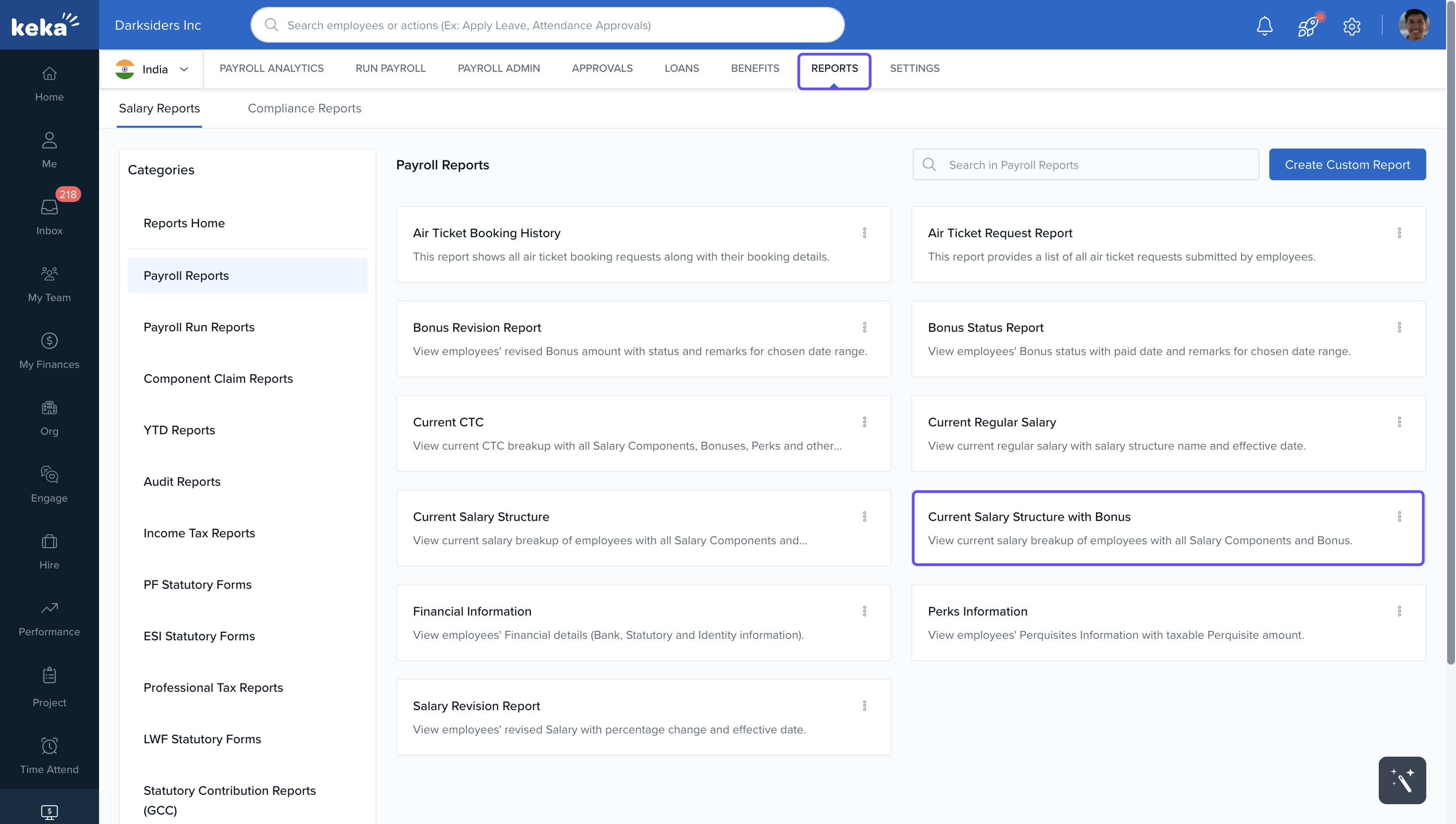 In the Payroll Reports section, select Current Salary Structure with Bonus.