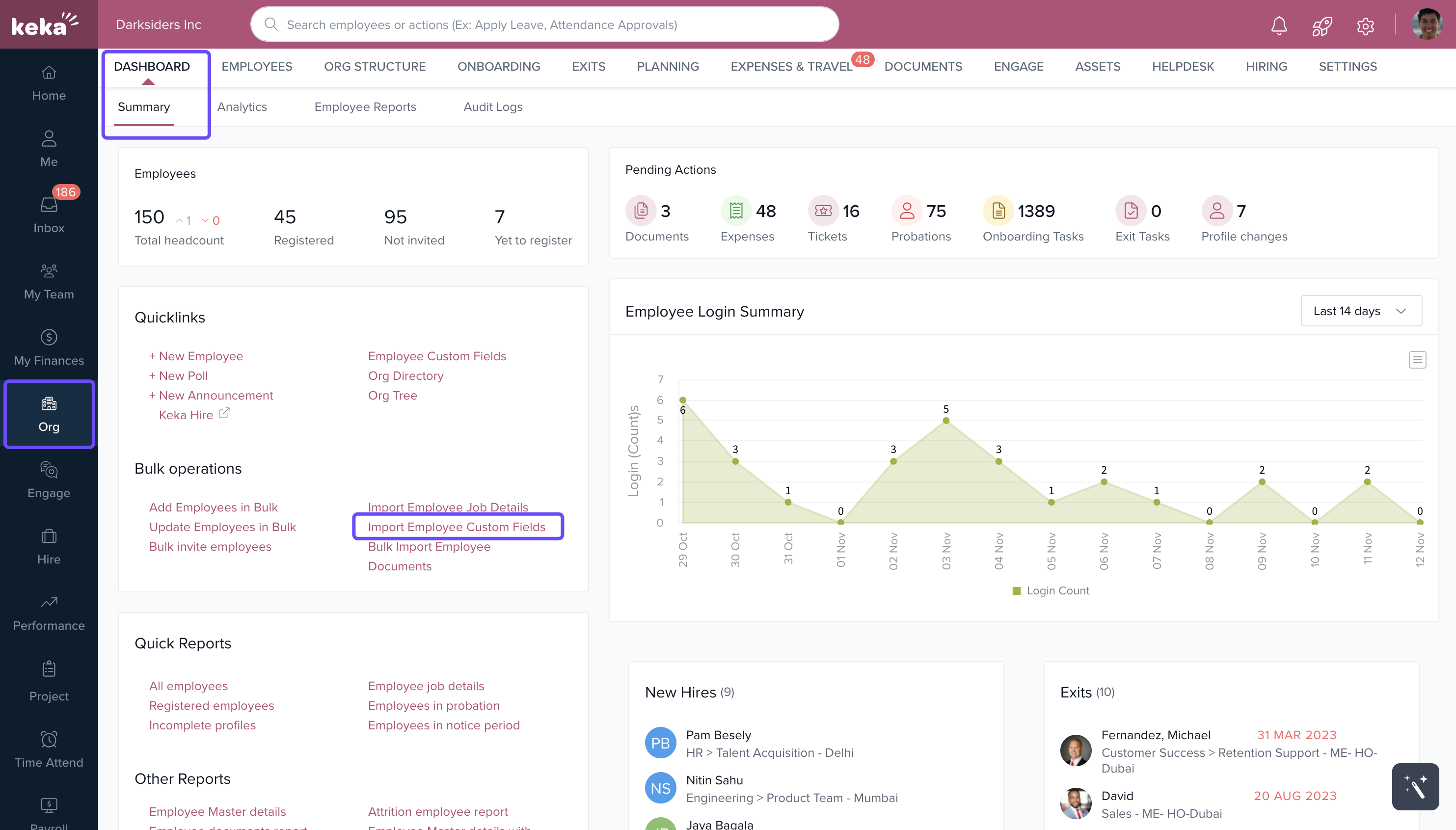 Under the Quicklinks section, select Bulk Operations and click on Import Employee Custom Fields.