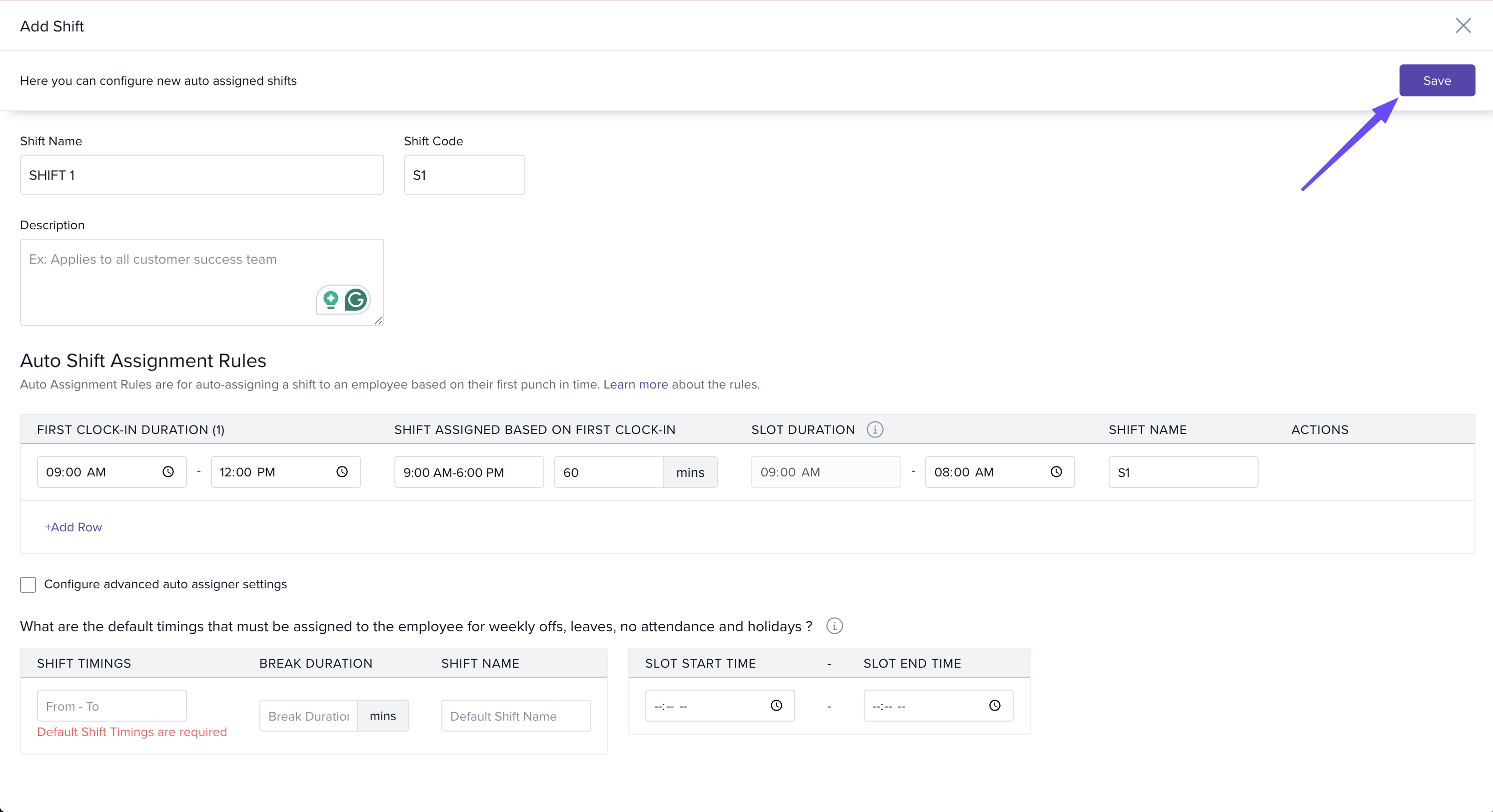 Auto-shift assignment automatically maps an employee to a pre-defined shift based on their first punch of the day.