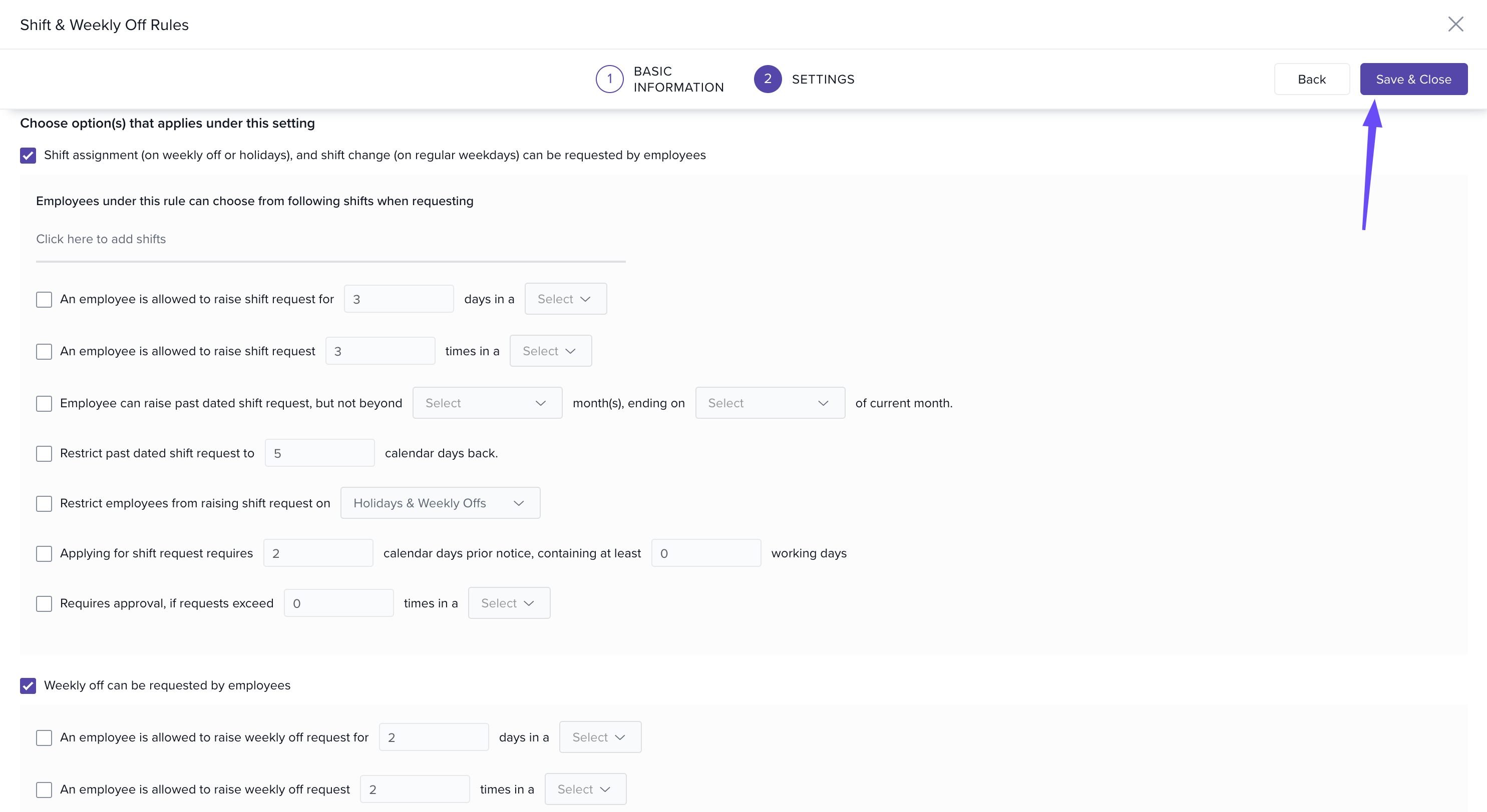 Creating Shift & Weekly Off Rules