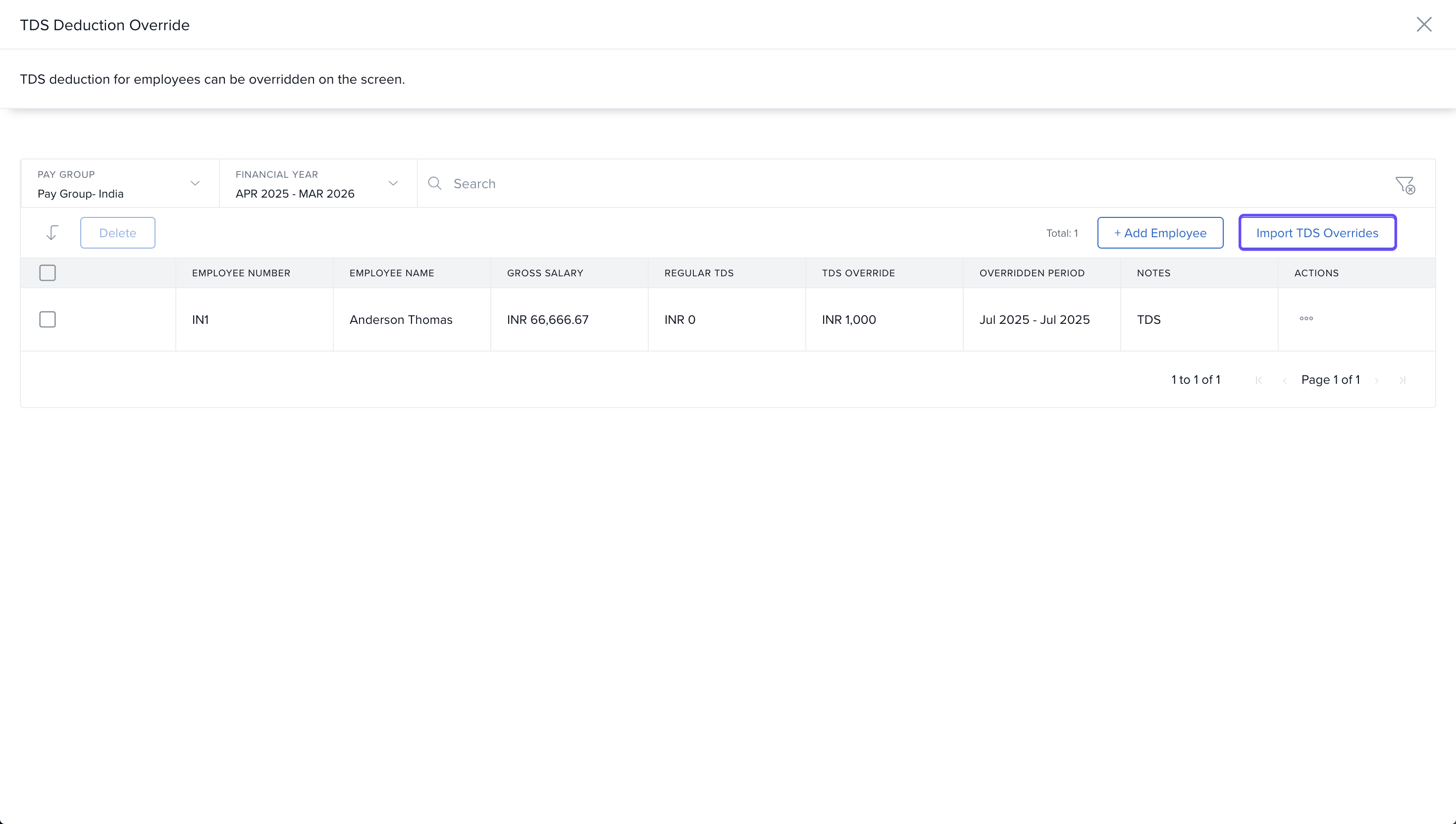 In the TDS Deduction Overrides section, click Import TDS Overrides.
