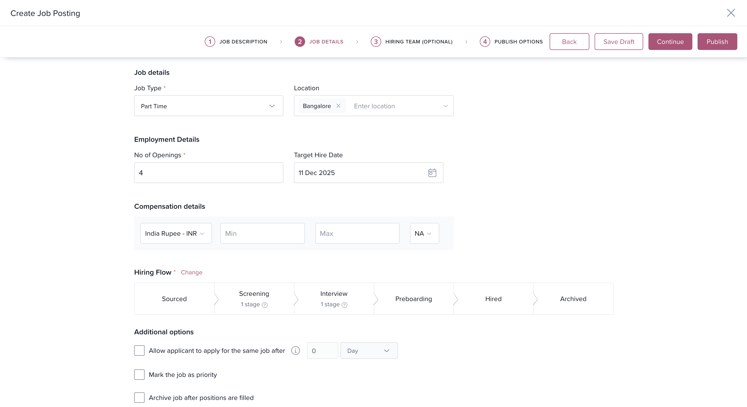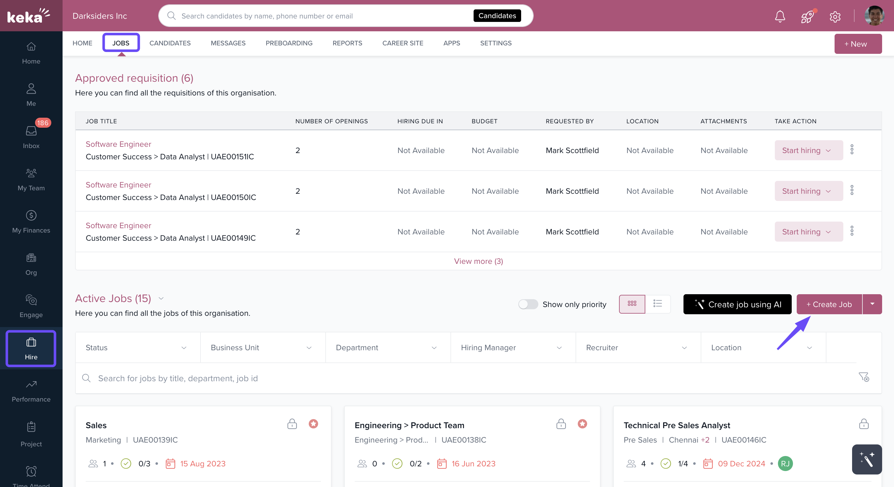 Job postings help candidates understand what a role entails and determine if they’re a good fit. In Keka Hire, you can publish job openings not only on your career site, but also integrate them with external platforms like Naukri and LinkedIn. Here's how to create and publish a job post in Keka Hire.
