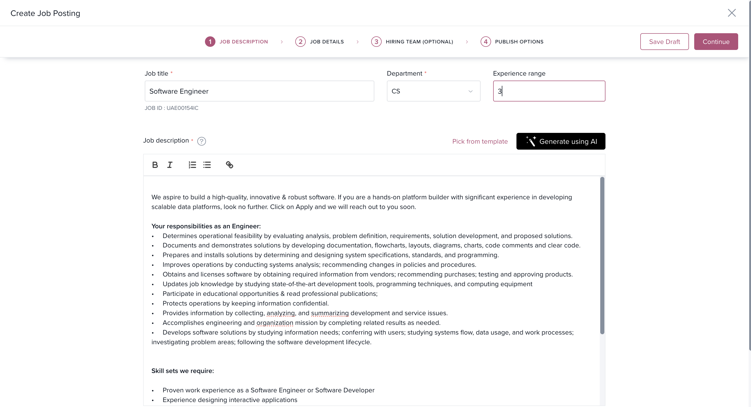 Job Description – You can type it manually or click Pick from Template to use a saved job description.