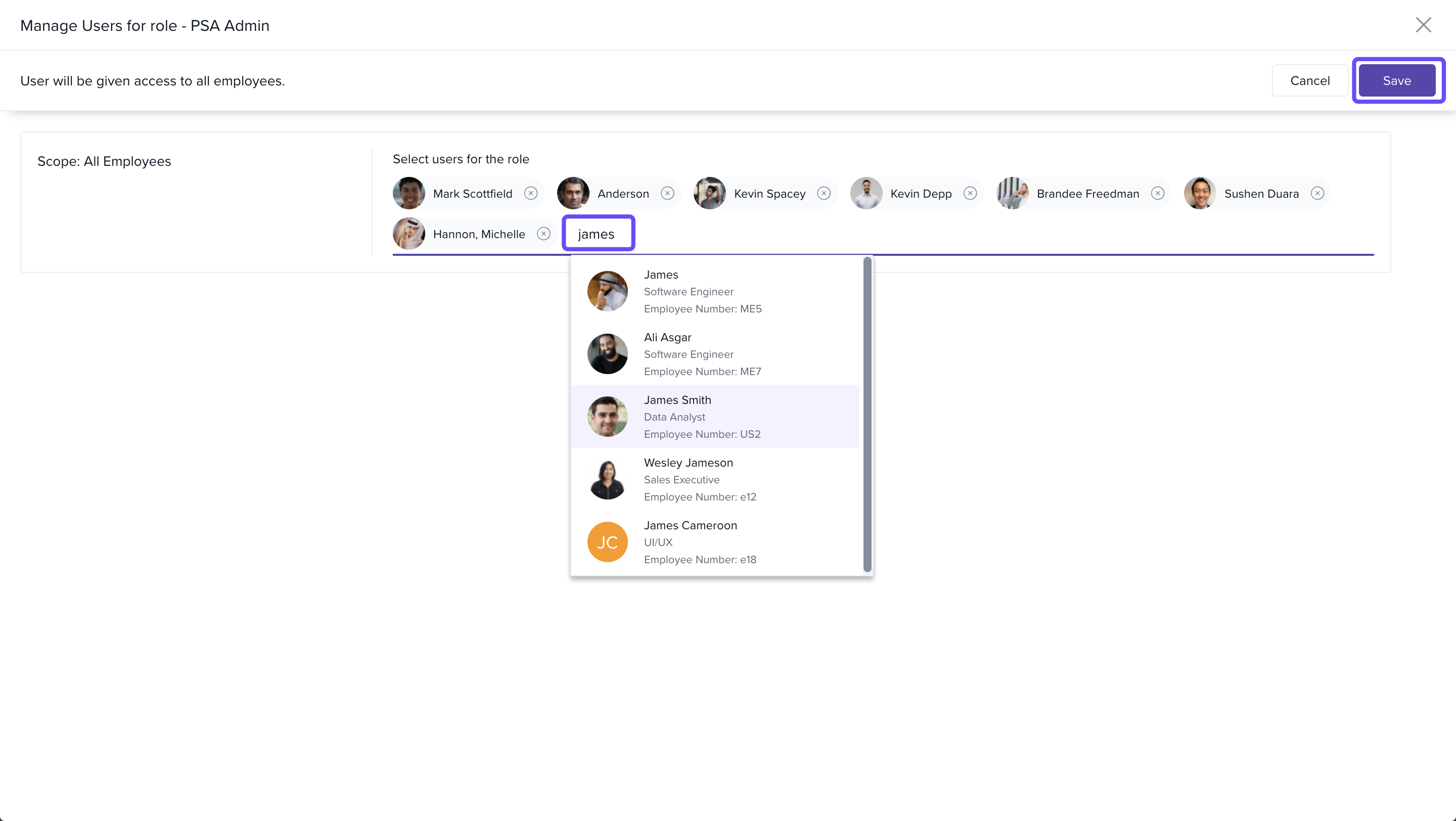 - In the search bar, type the name of the user you want to assign as Project Admin.