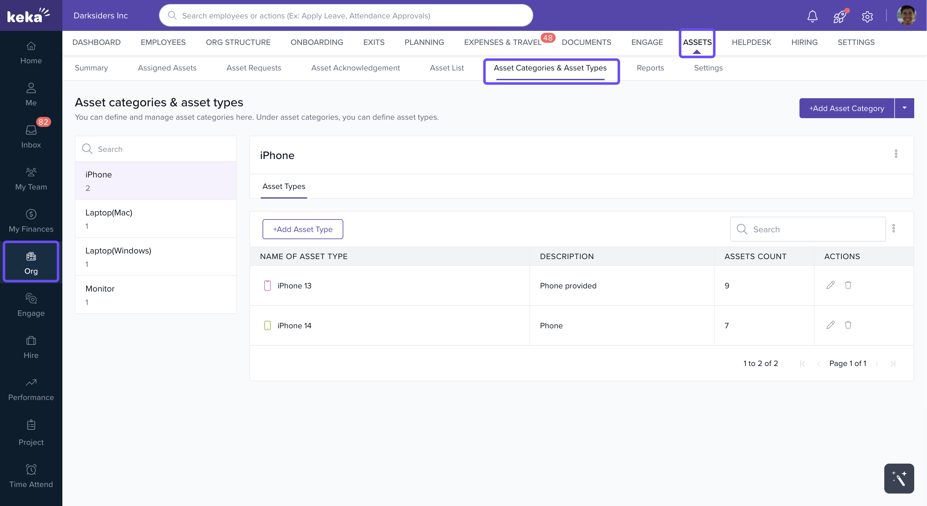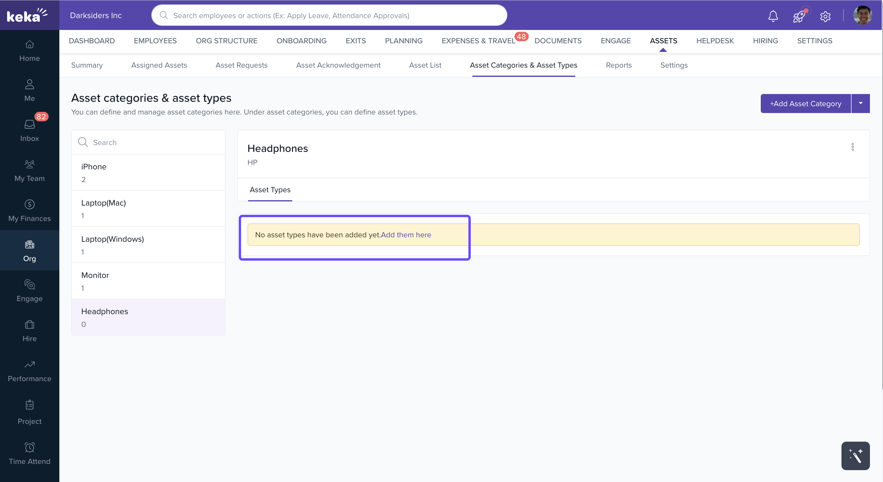 By setting up Asset Categories & Asset Types in Keka, you can: