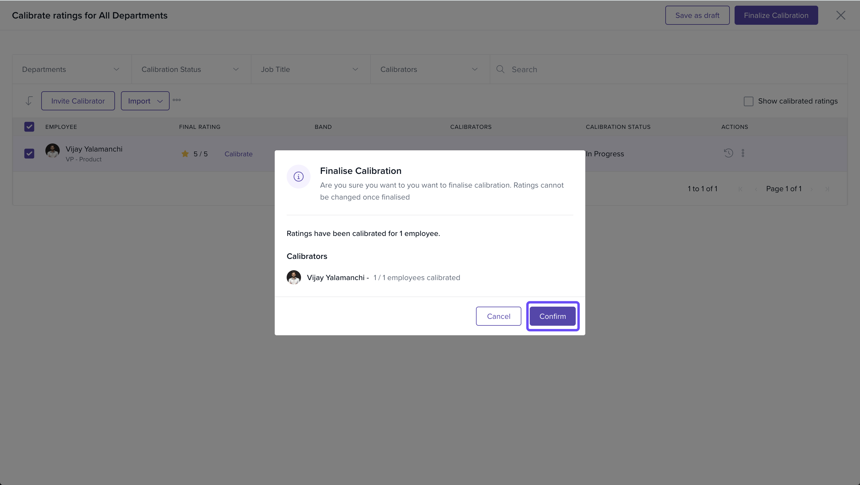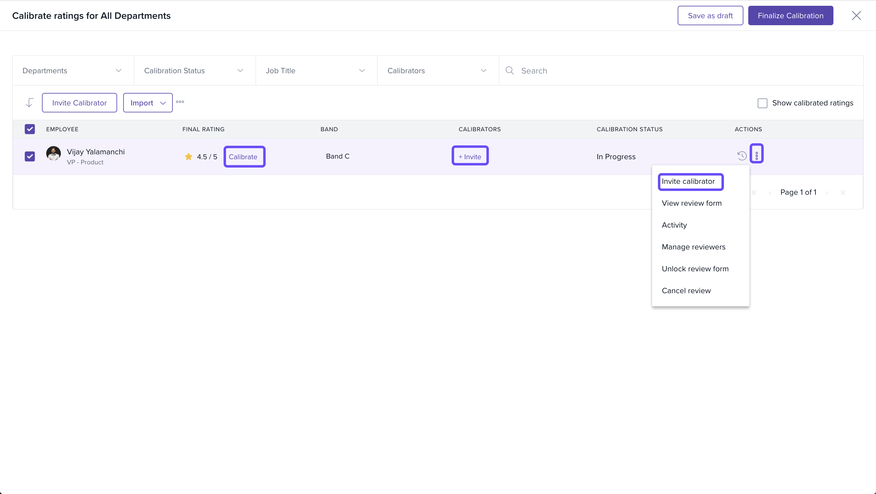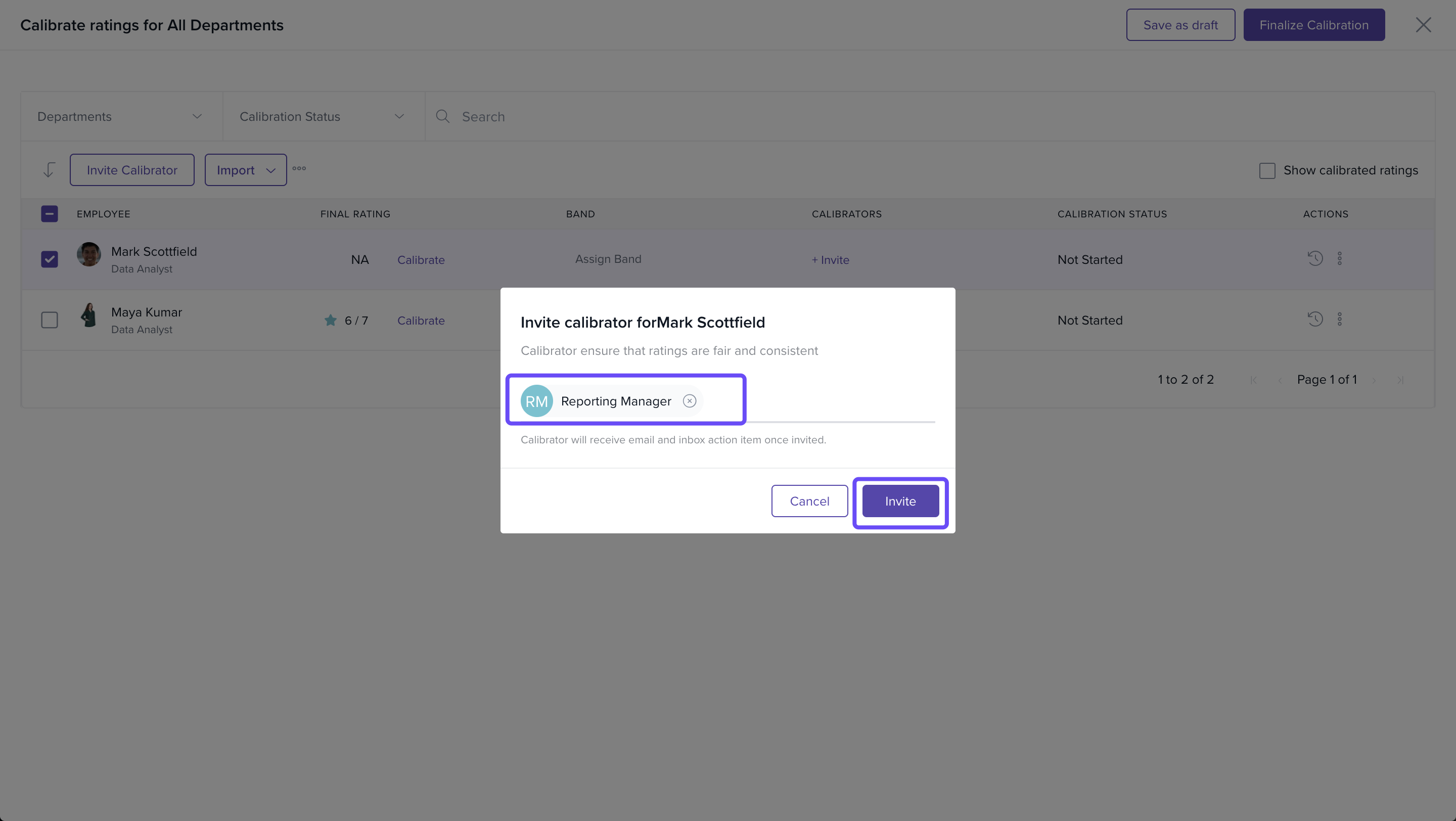 You can quickly invite calibrators who will ensure that the ratings are fair and consistent.