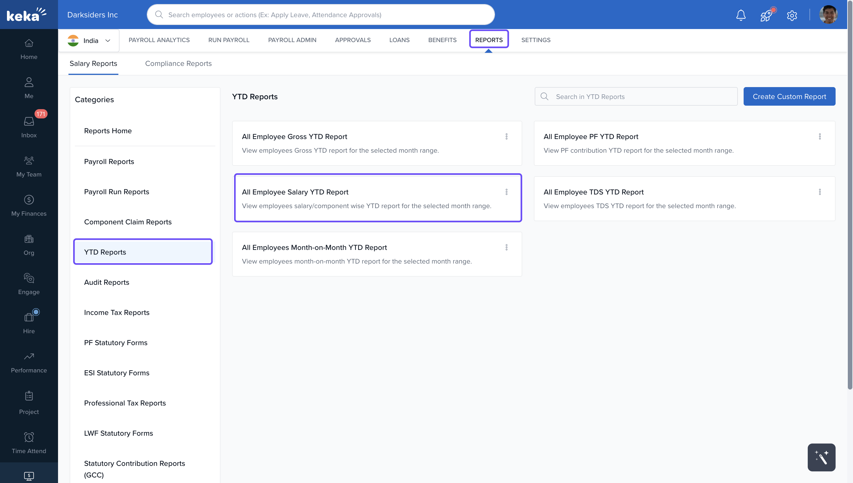 In Keka, the YTD figure shows the total of an employee’s wages or earnings from the start of the current calendar year until the most recent pay period.