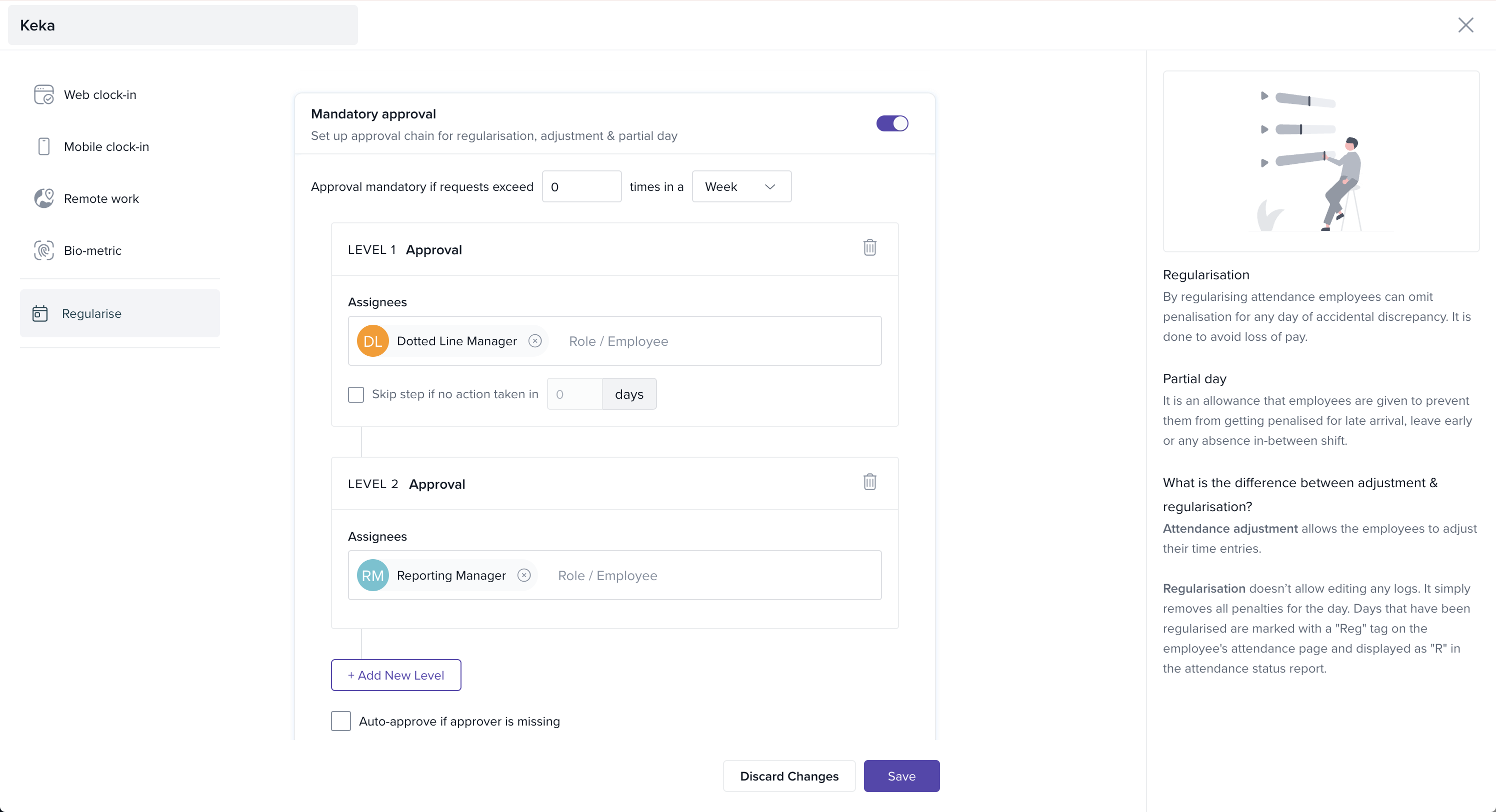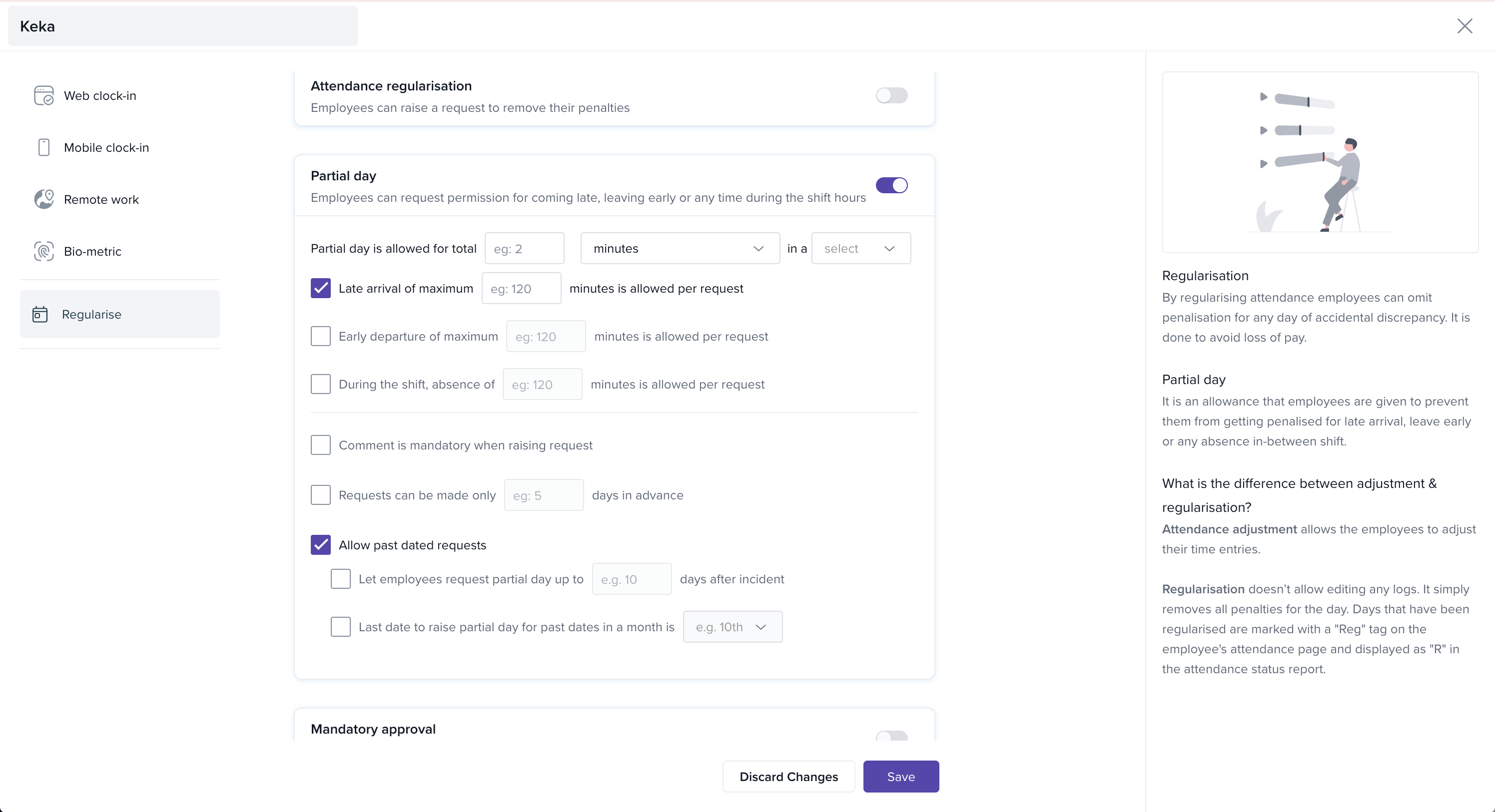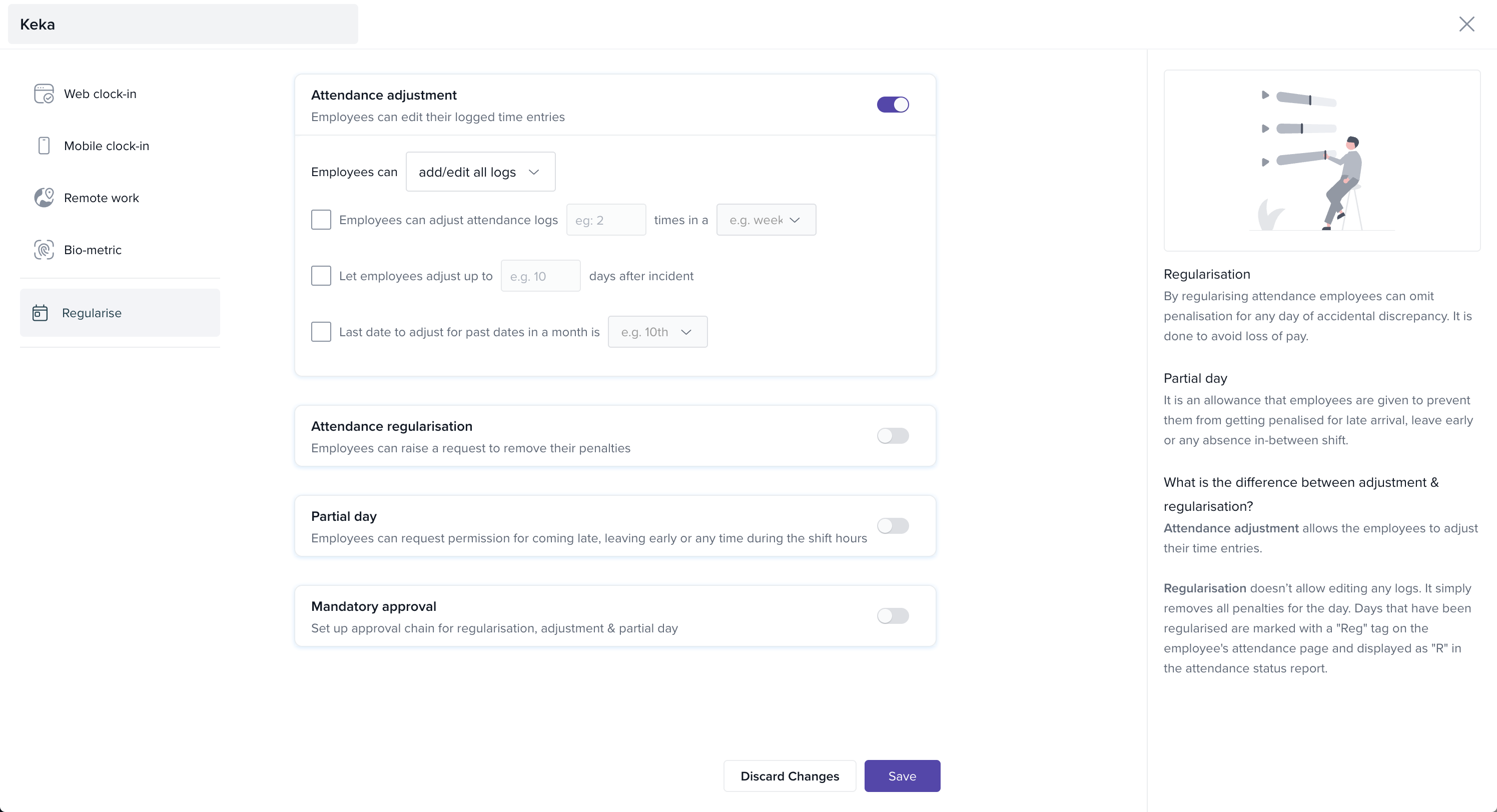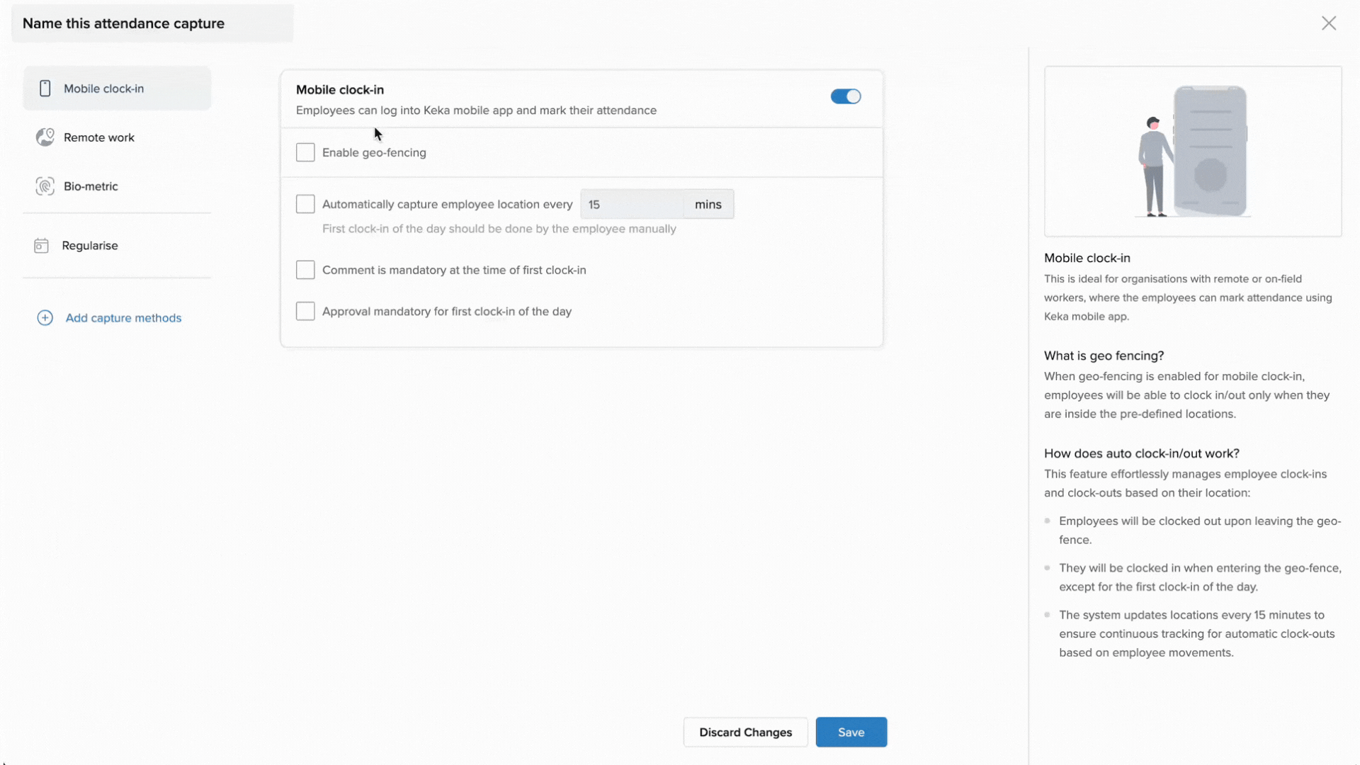 This guide walks you through adding a new capture policy, configuring clock-in methods, and enabling attendance regularisation.