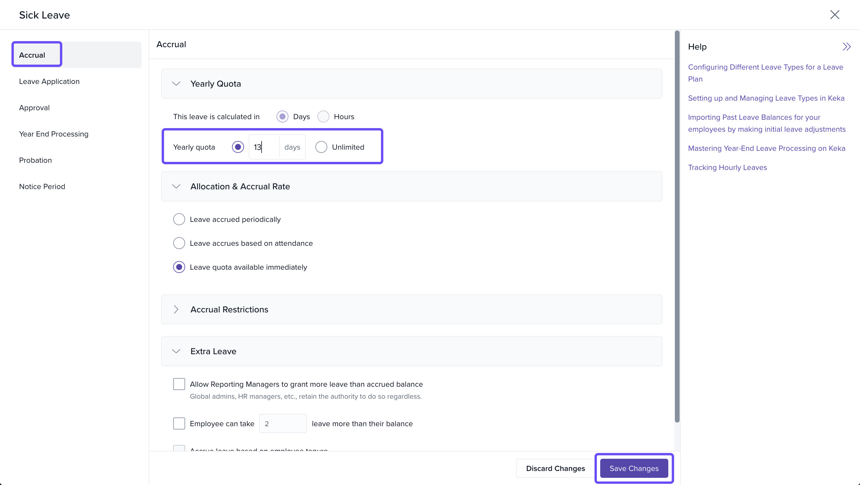 - Update the ‘x’ days per year value in the Accrual section.