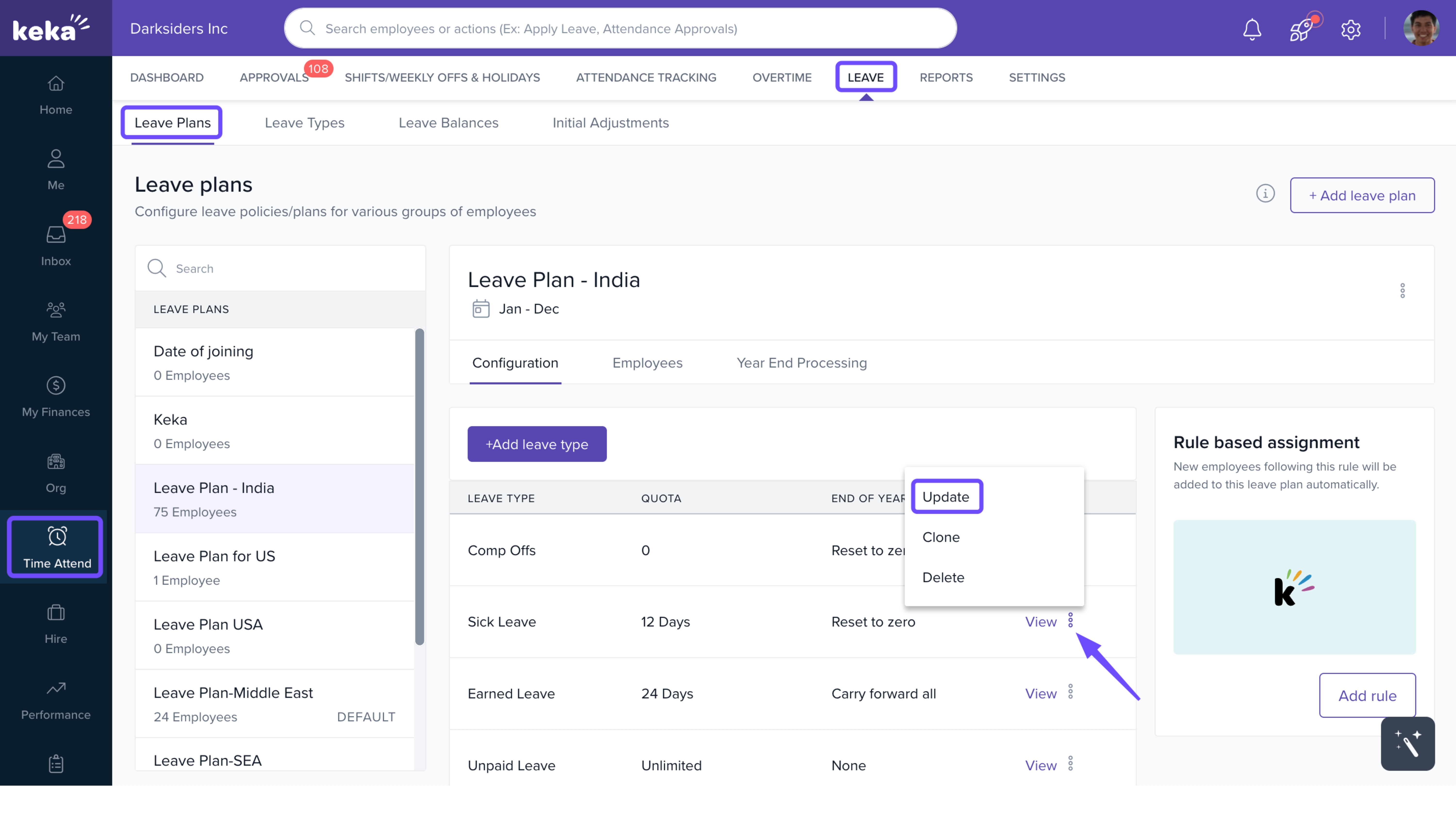 You can configure leave accrual rules in Keka to match your company's HR policy. If your organization allows employees to start accruing leave only after a certain number of days from their joining date, you can set this up in just a few steps.