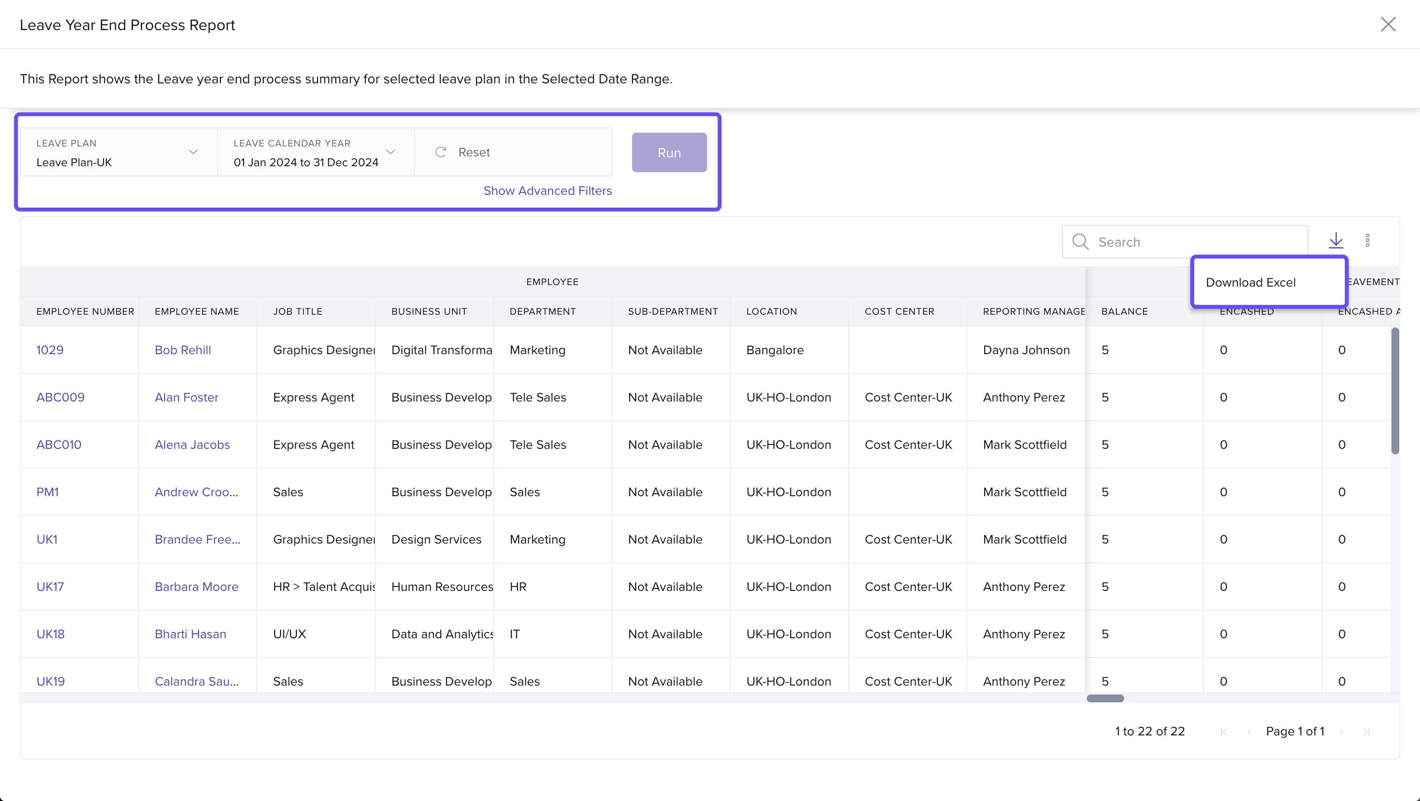 - Under Leave Reports, scroll down and search for Leave Year End Processing Report.