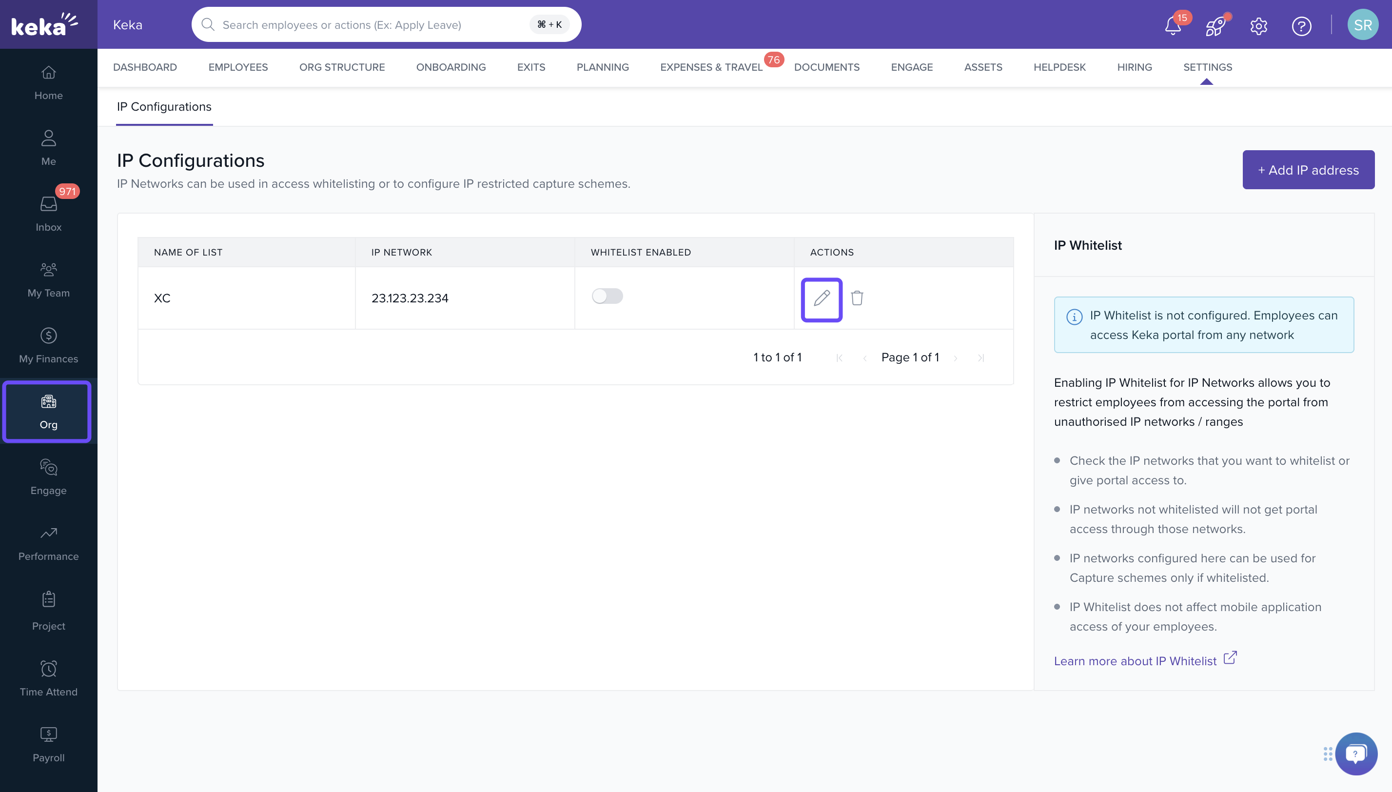 - Find the IP address you want to edit and click on the pencil icon under the Actions column.