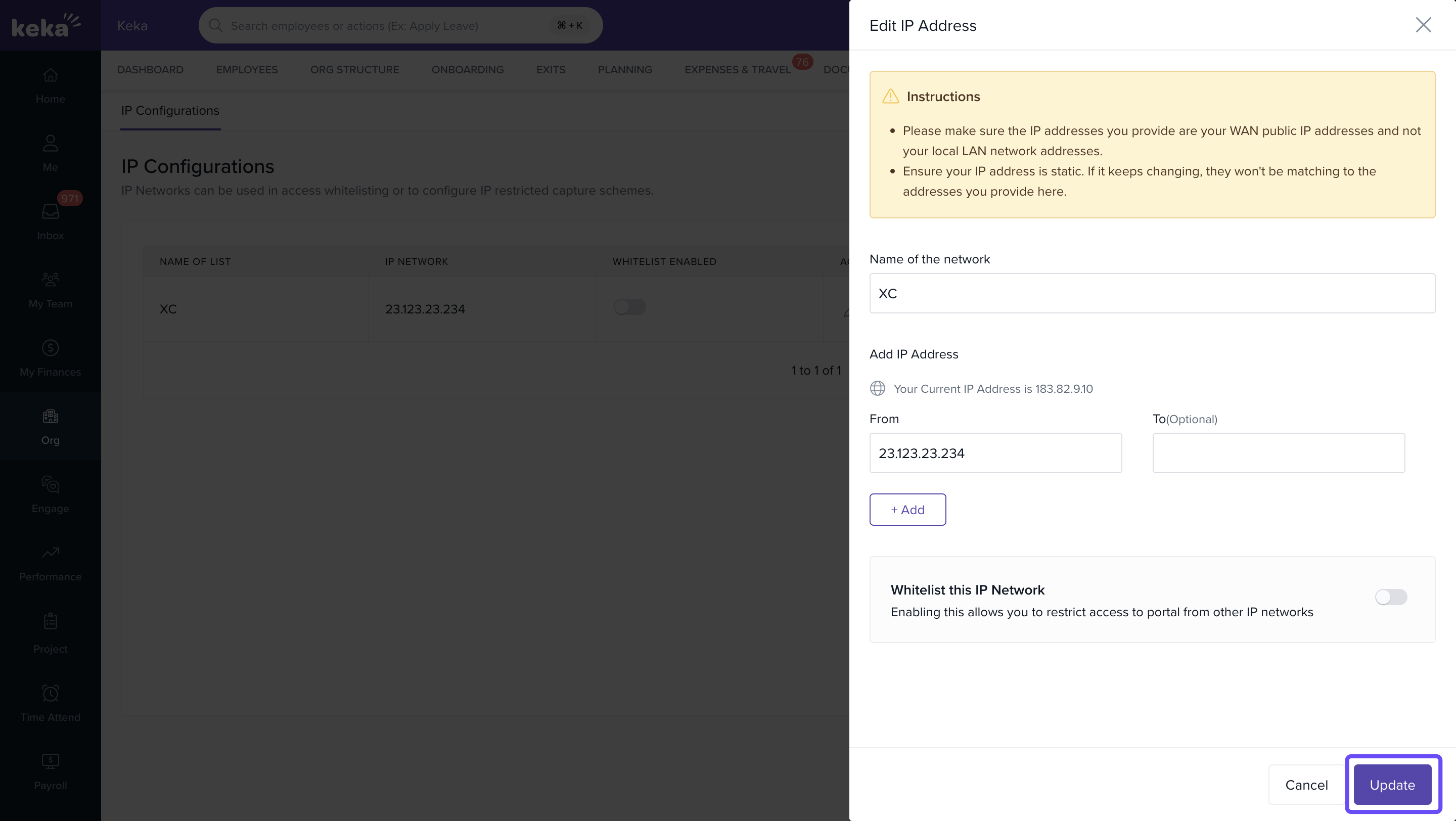 In the Edit IP Address window, make the necessary changes and click Update.
