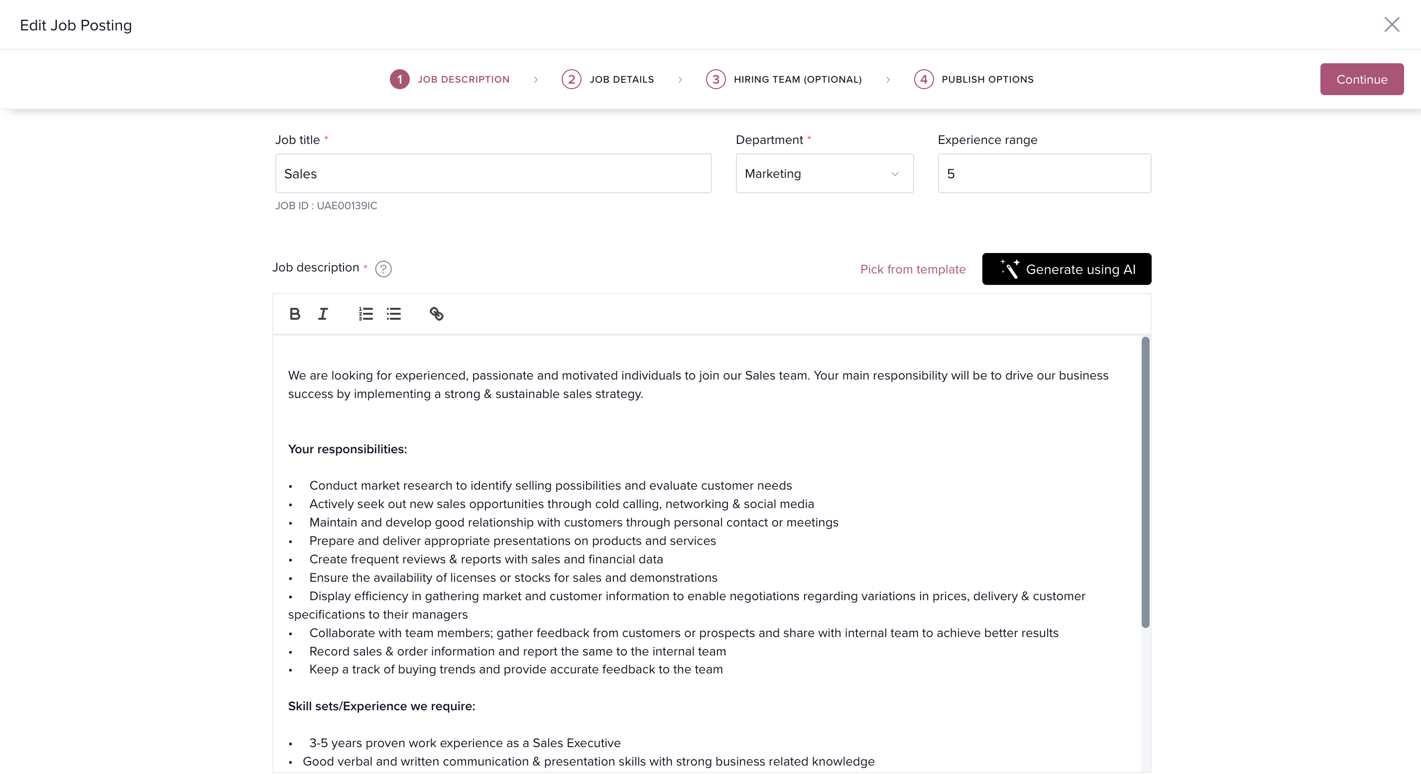 Once you've created a job, you may want to update the job description to provide applicants with more detailed insights into the role's responsibilities, required skills, and qualifications. Keeping the job description up to date helps ensure successful recruitment efforts.