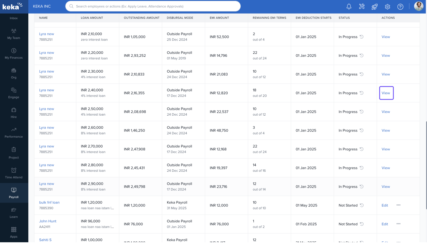 Under Status, find the loan marked as In Progress and click View under Actions.