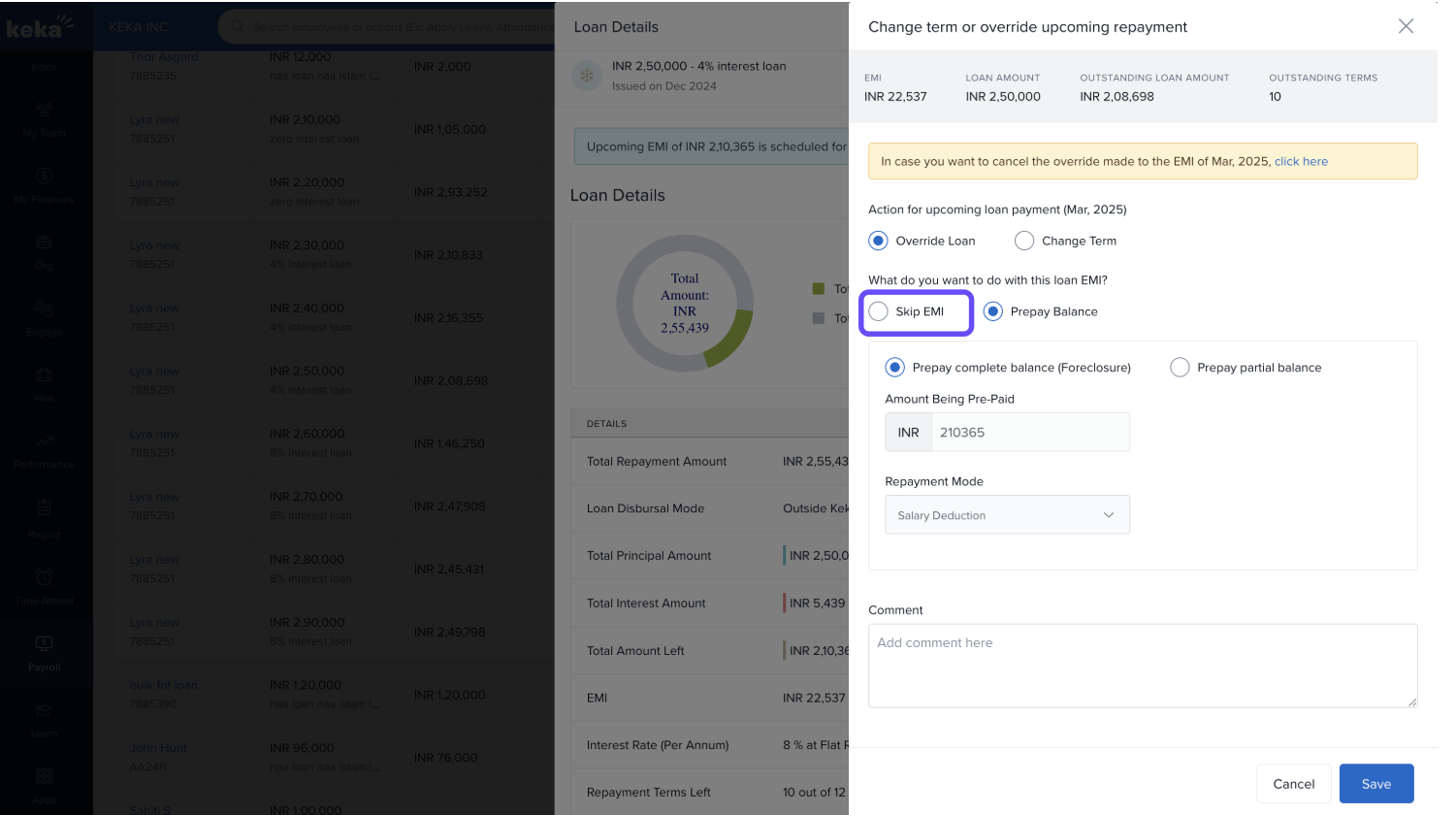 “What do you want to do with this loan EMI?”Choose how this affects future installments: