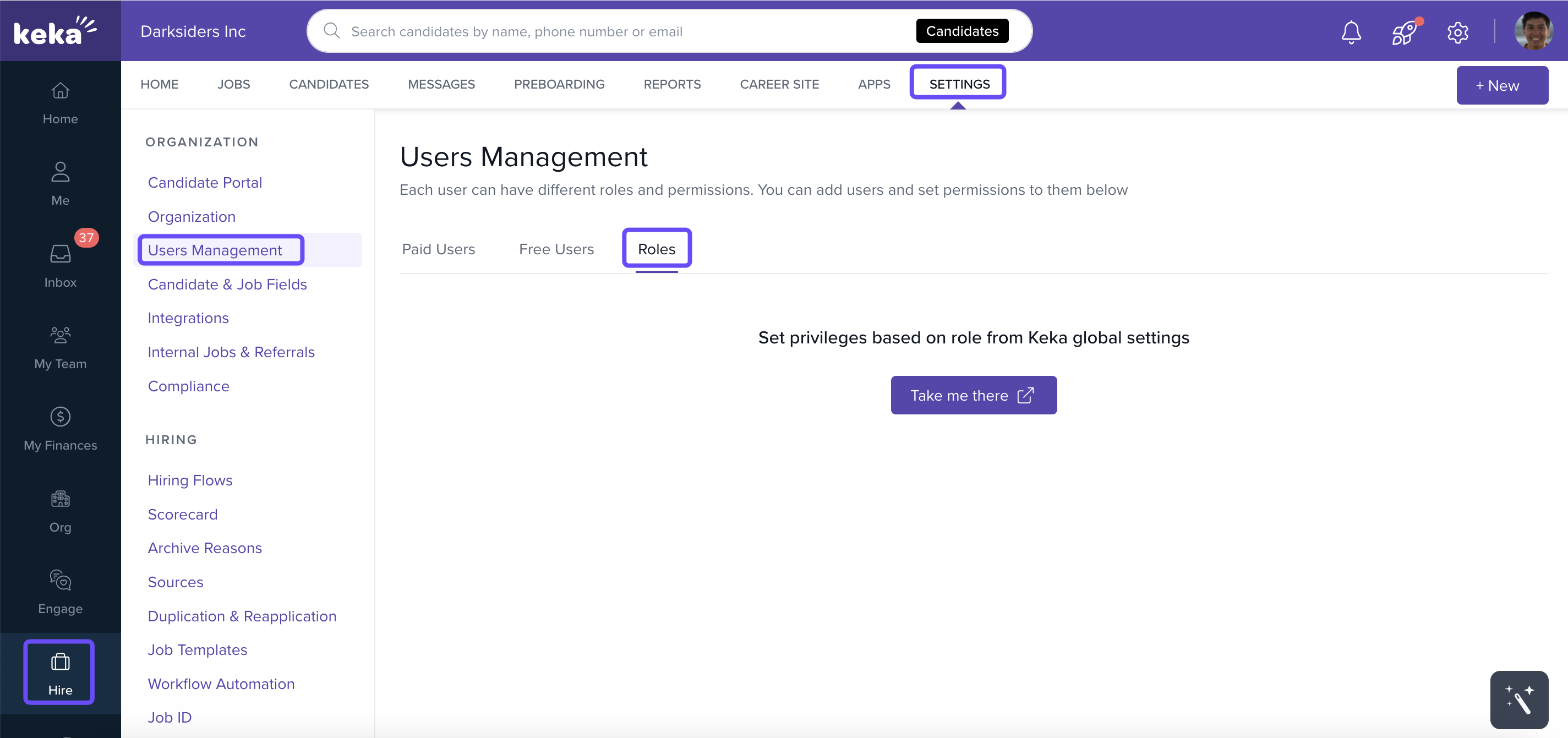 Global Admin (Paid): Full access across Keka Hire, including account and billing.