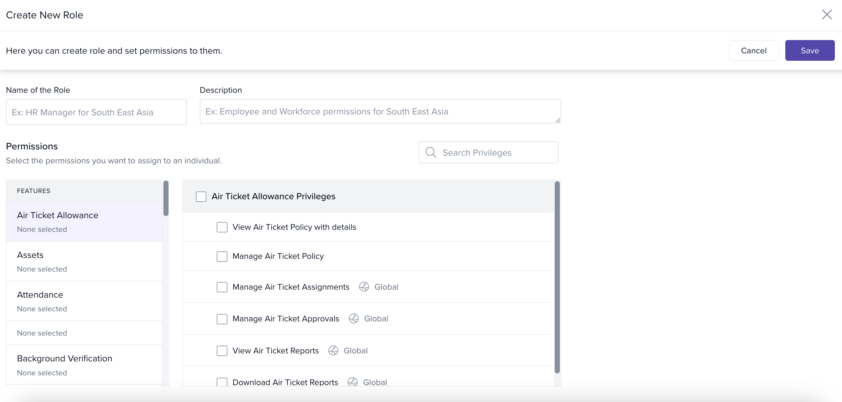 Enter the Role Name and a brief Description.