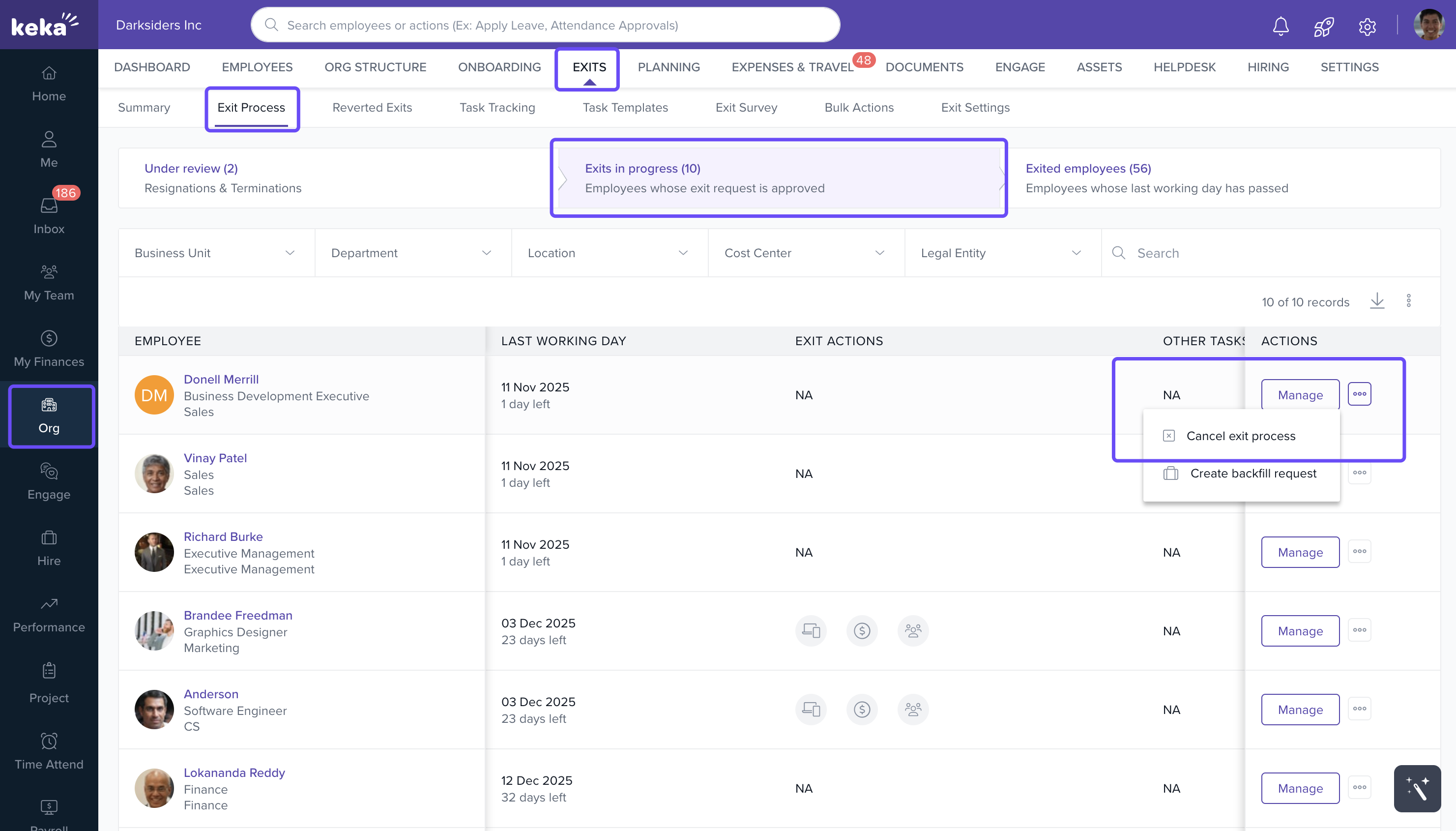 Once done, the employee’s exit process will be canceled and they will remain active in the system.