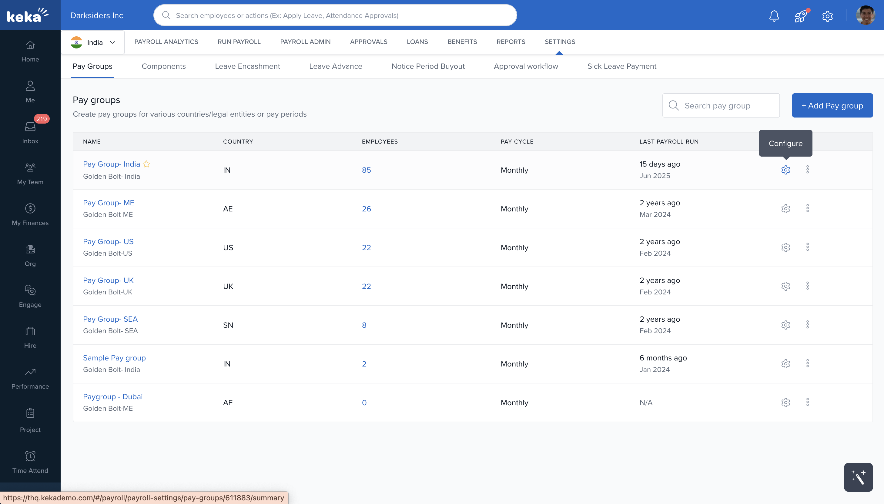 Select your Pay Group and click the Configure Icon.