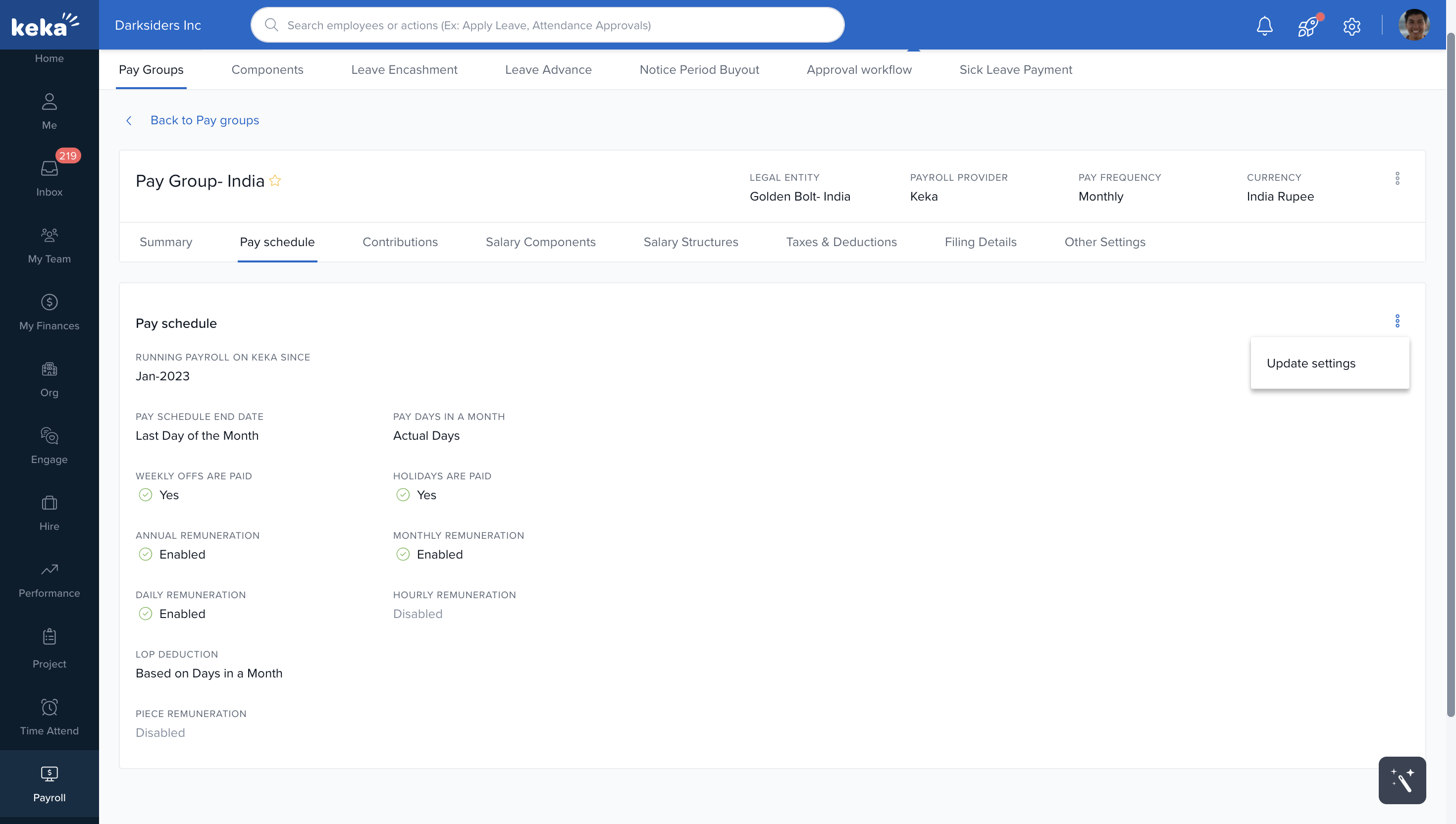 Example: If an employee joins on January 11 and Pay Days are set to 30, their payable days might show as 20.32/30.