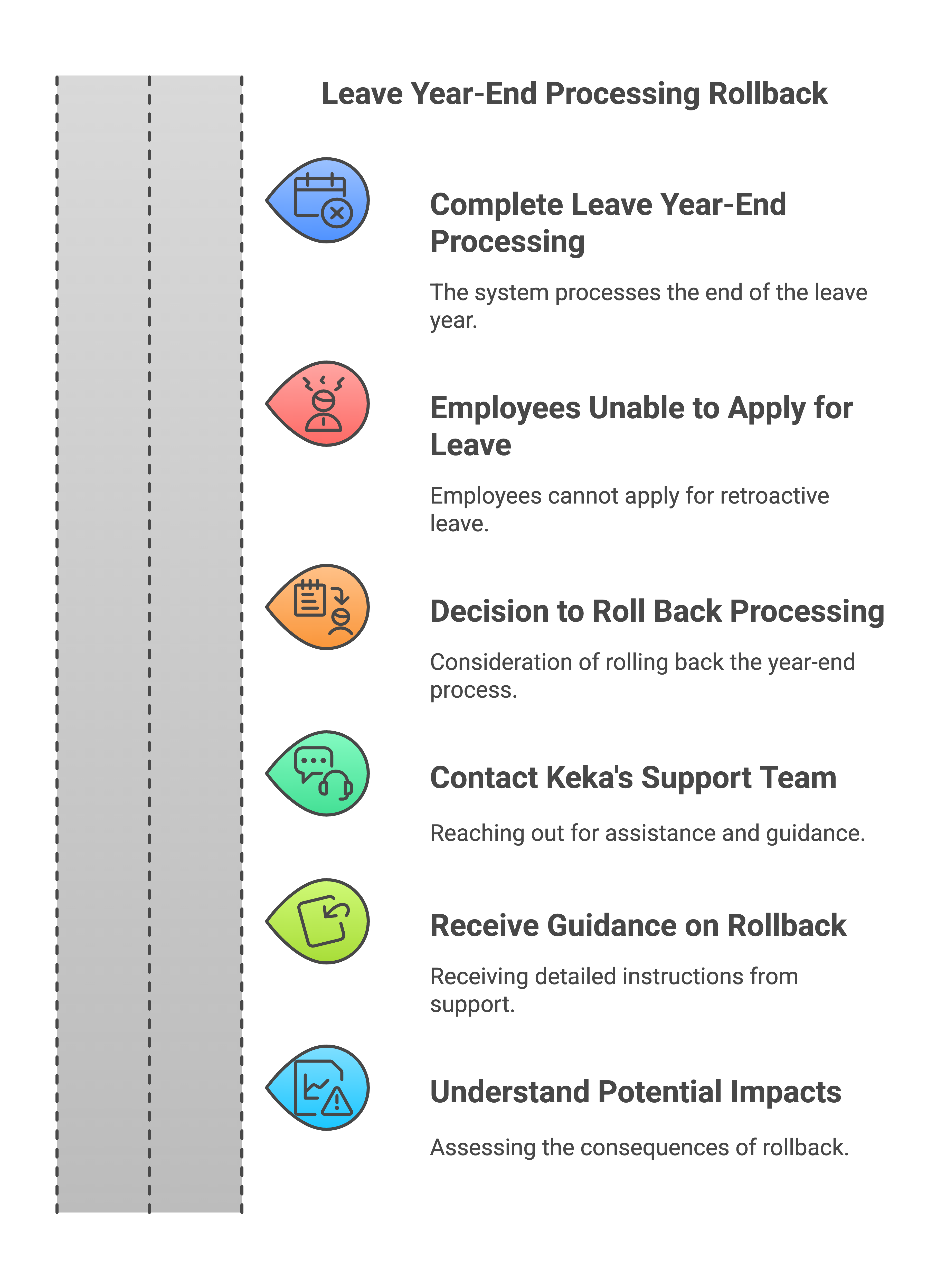 It's recommended to reach out to Keka's support team for assistance and guidance on this matter. They can provide detailed instructions and support for the rollback process, and also help you understand any potential impacts or consequences of this action on your organization's leave records and payroll.
