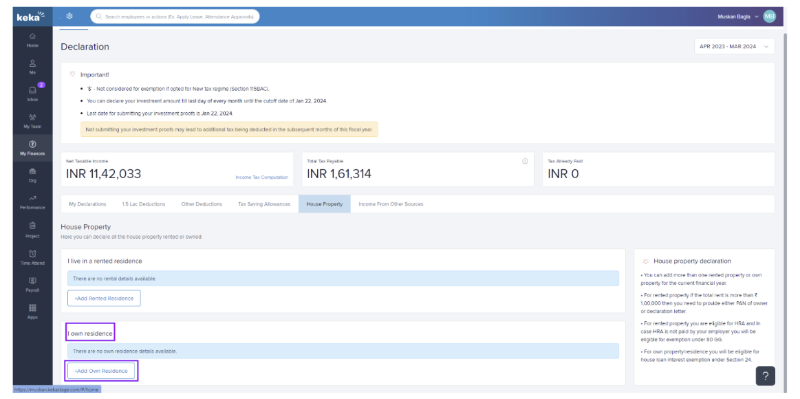 Click Add Own Residence under I own residence.