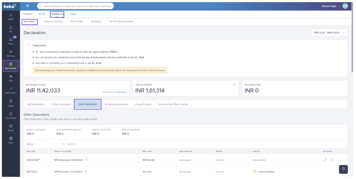 Go to My Finances ➔ Manage Tax.