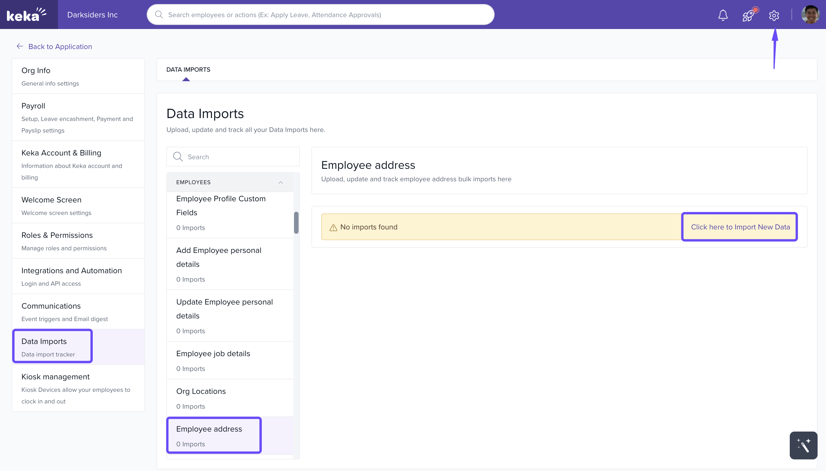 - Open the Data Imports section and scroll down to the Employees category.