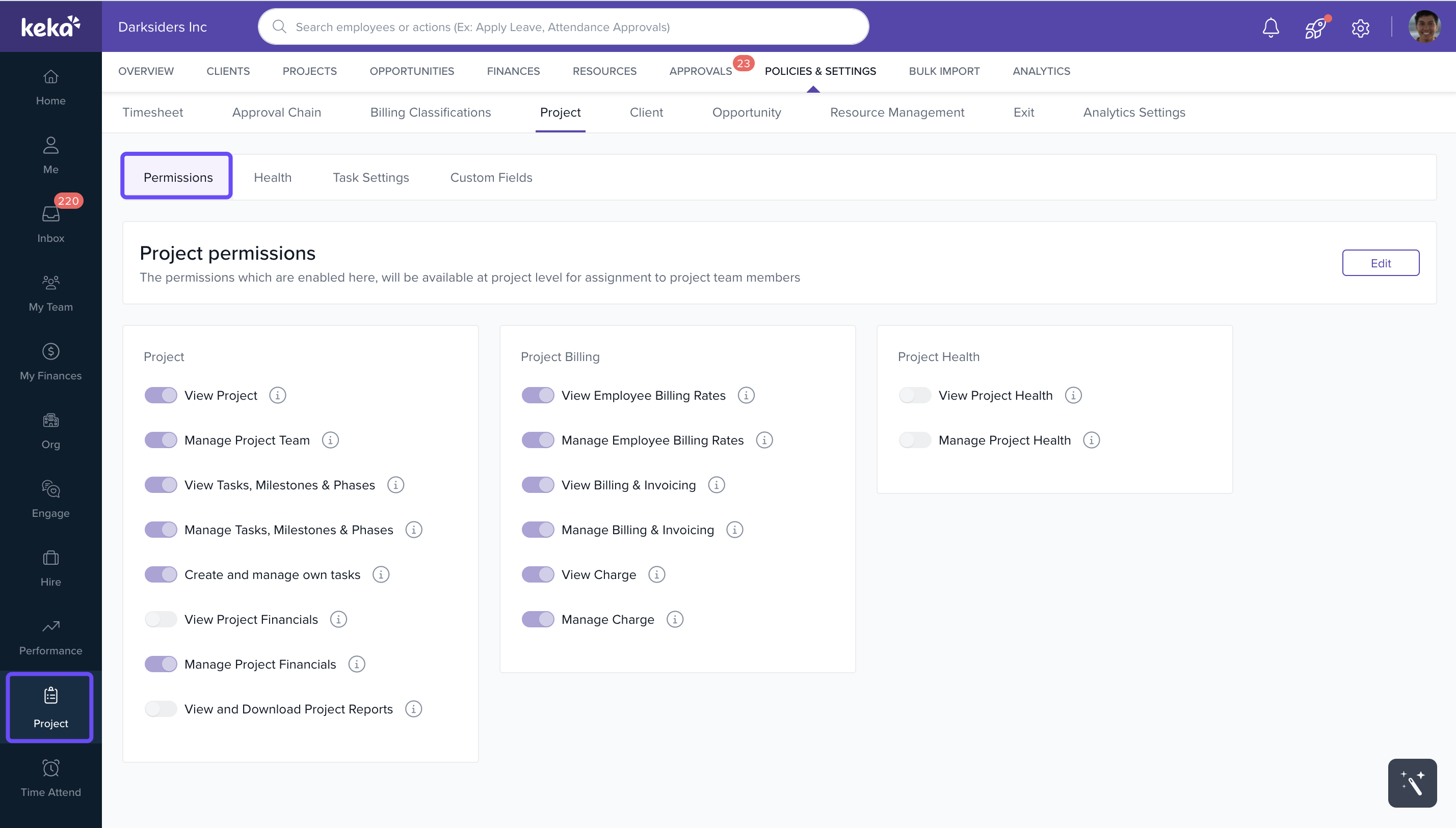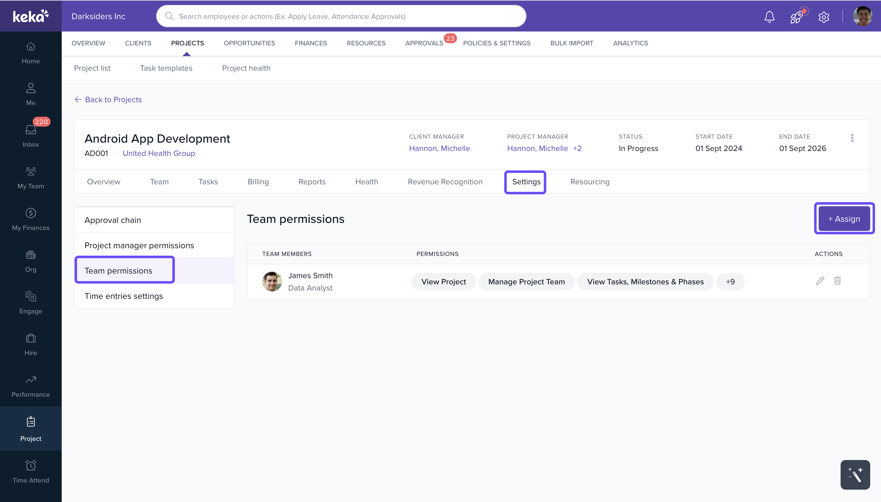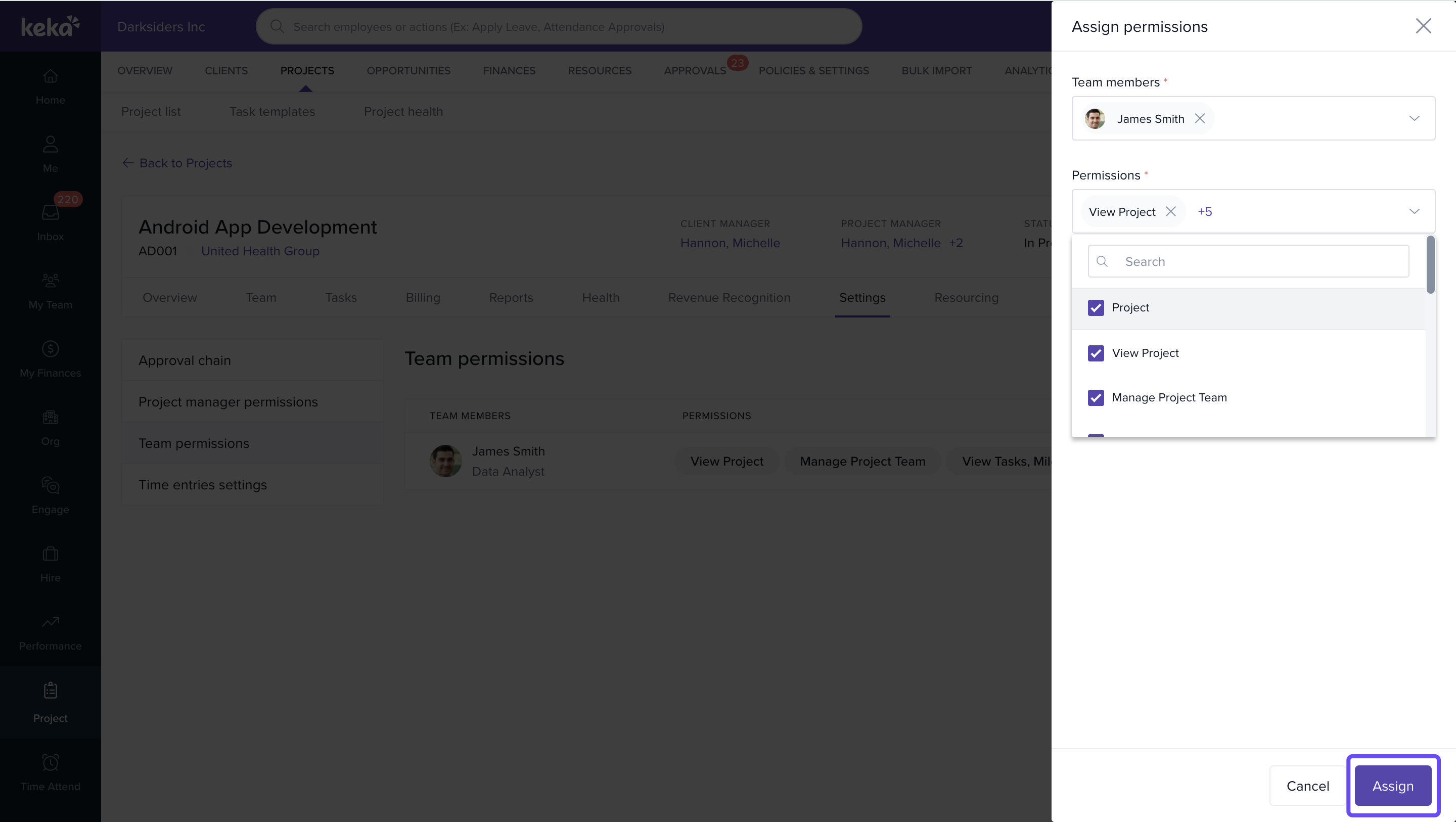 How to manage your project team's access using project-level permissions in Keka PSA.