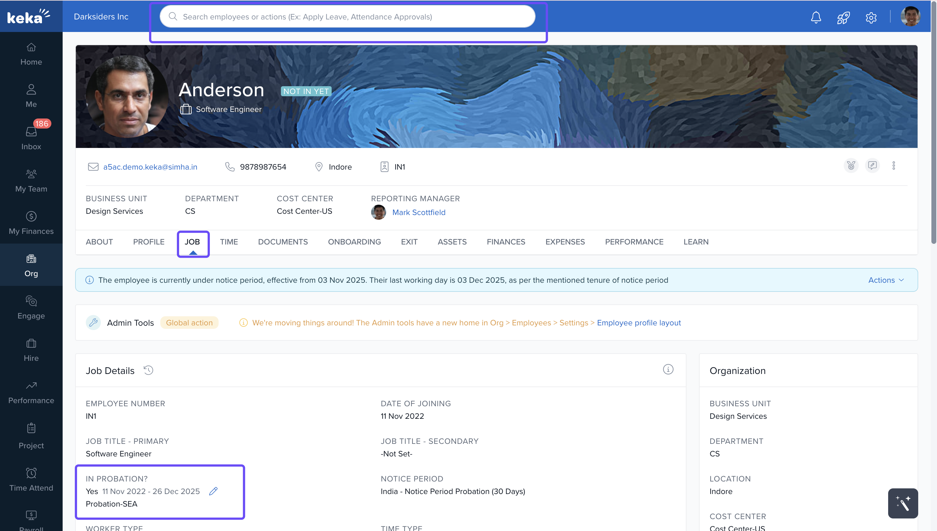 In the In Probation section, search for the employee