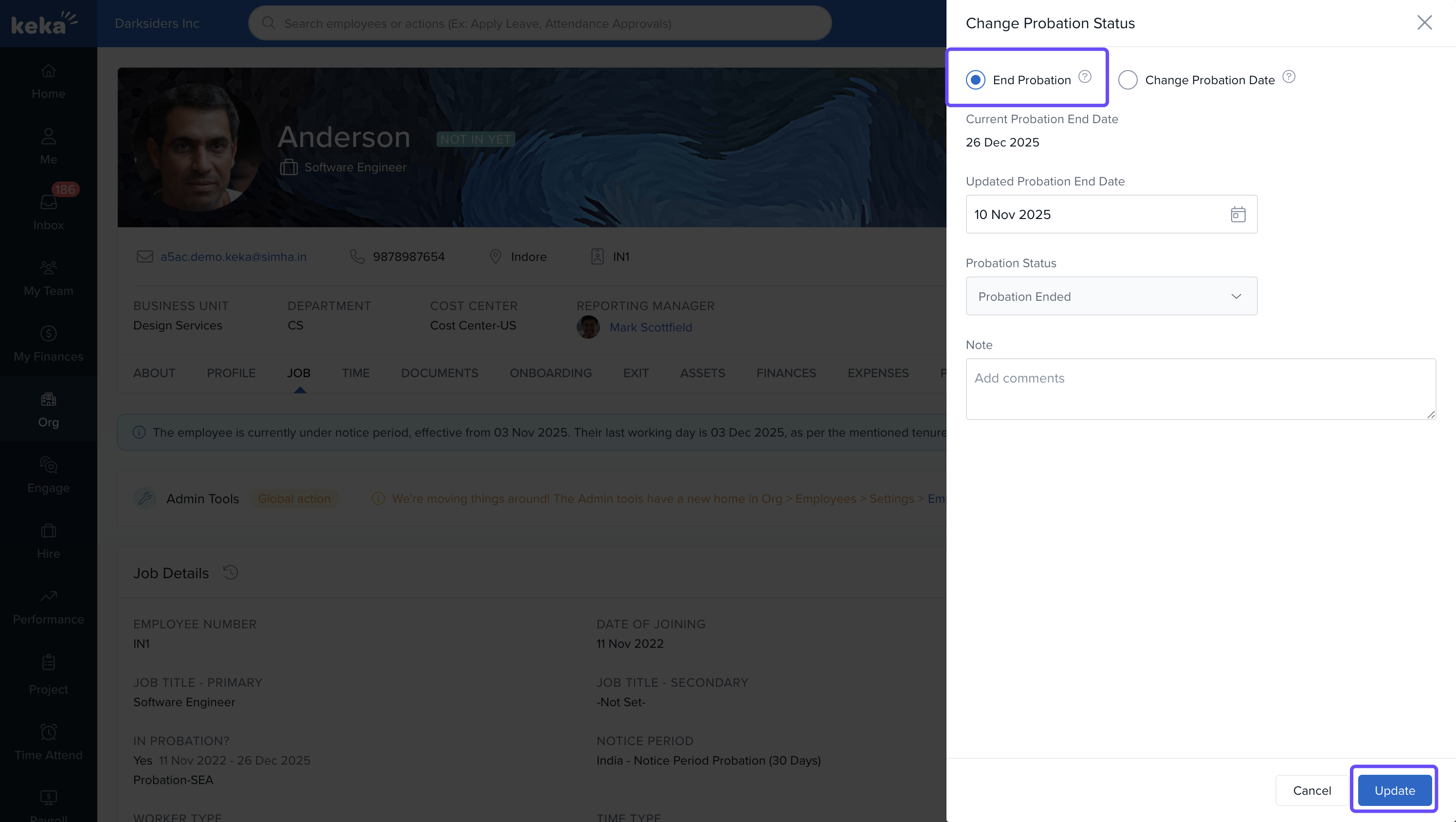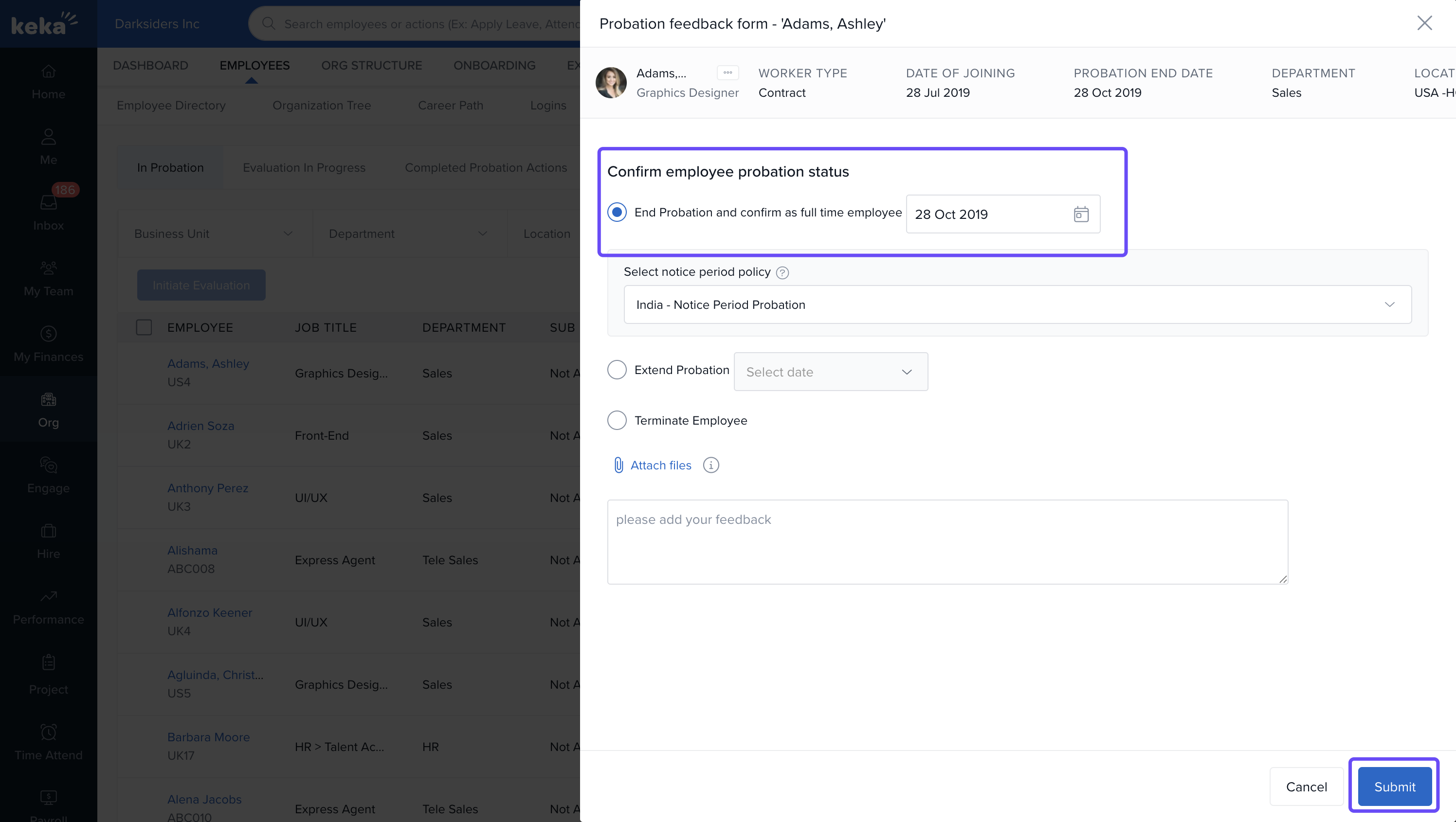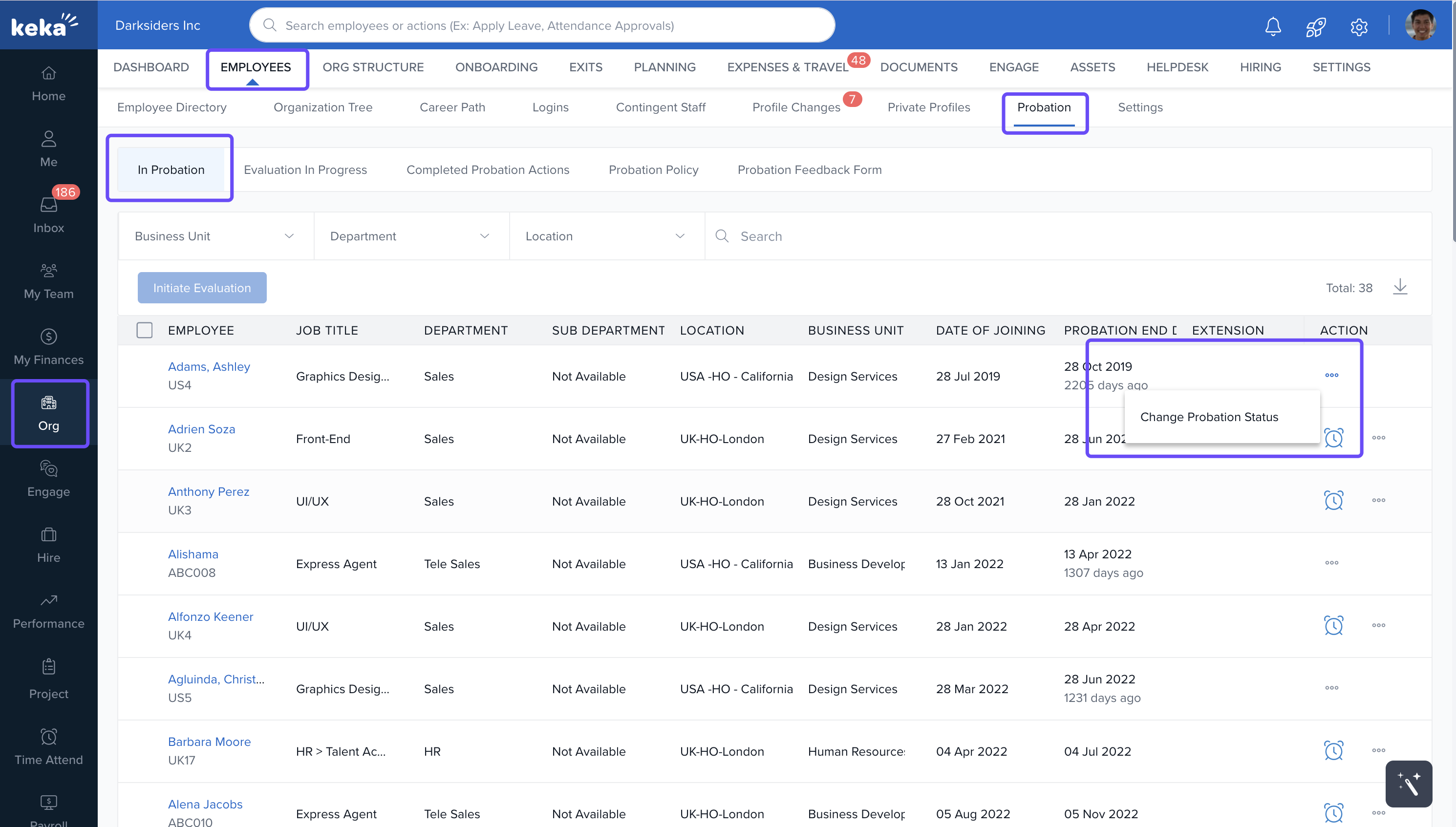 In Keka, there are three ways to change an employee's probation status: