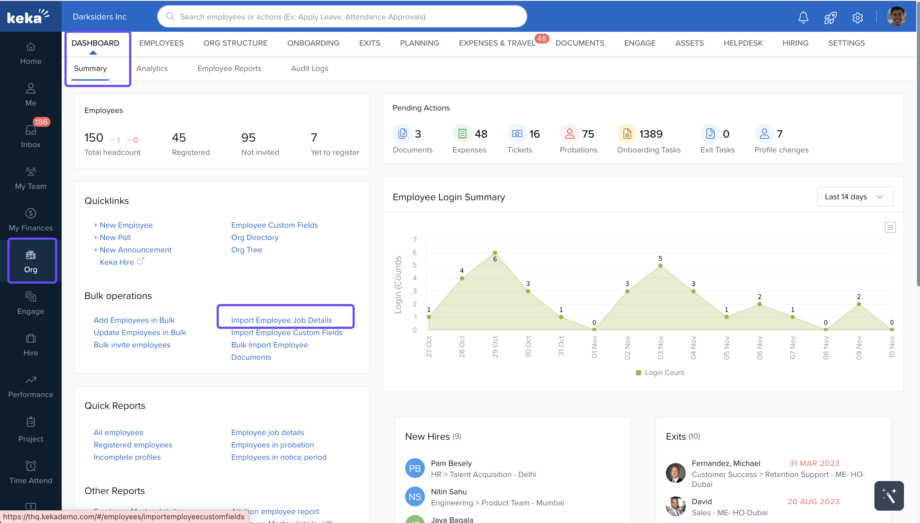 Go to Org > Employees