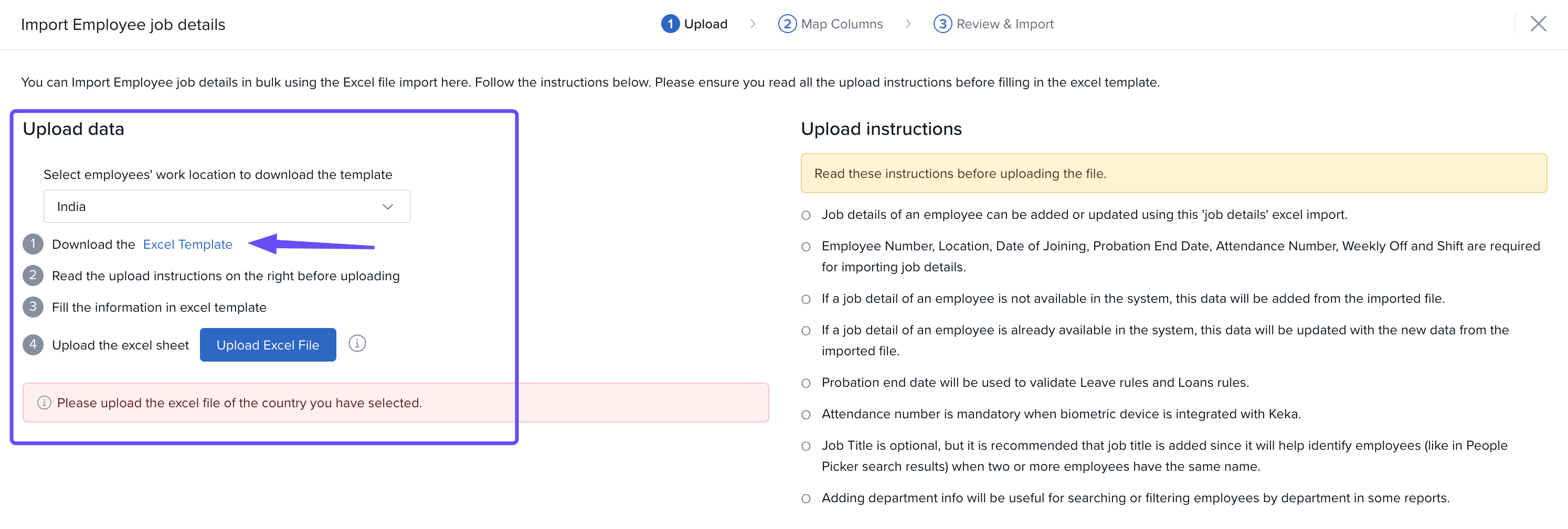 Click Import Employee Job Details