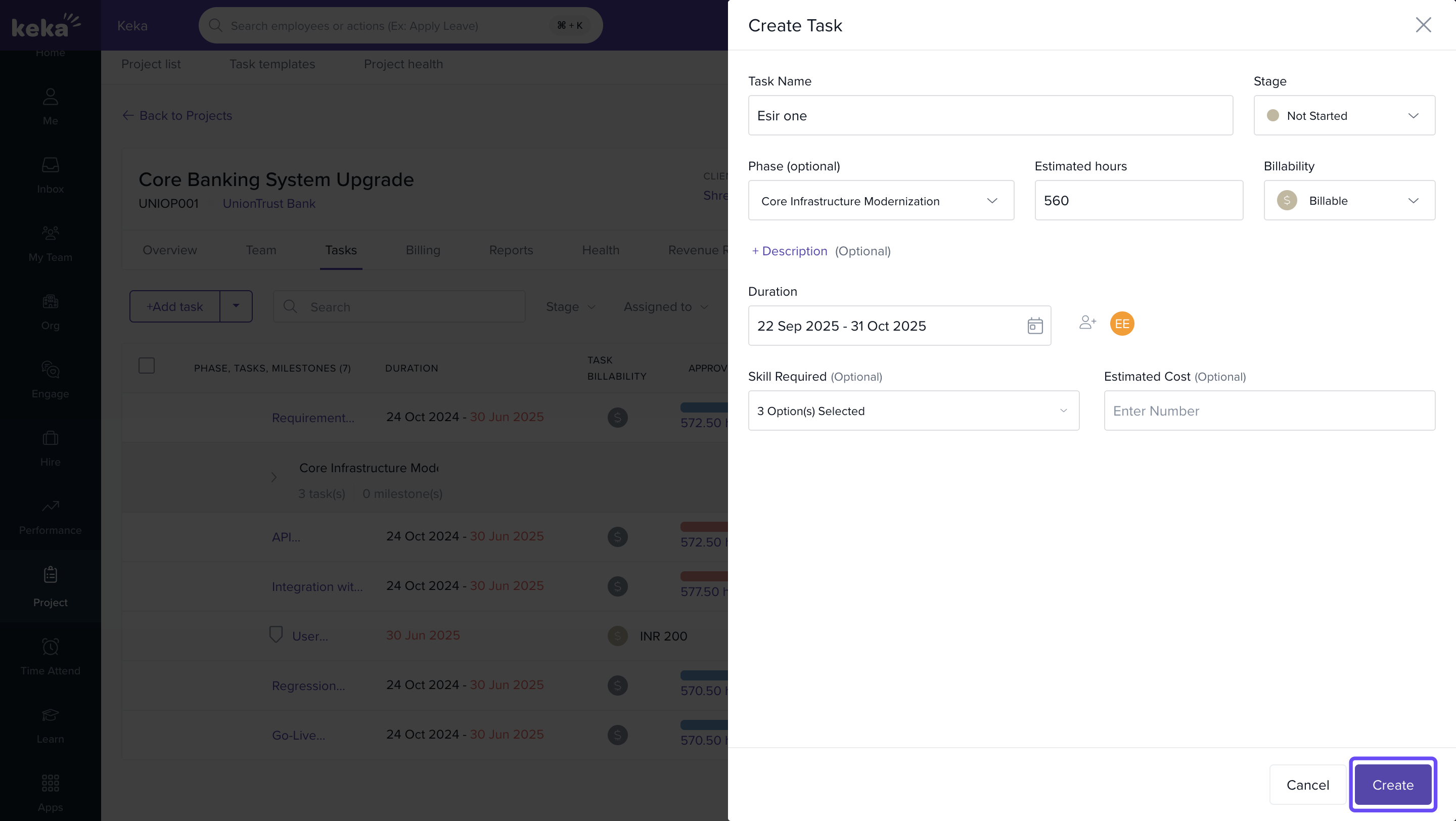- Click create to add the task.