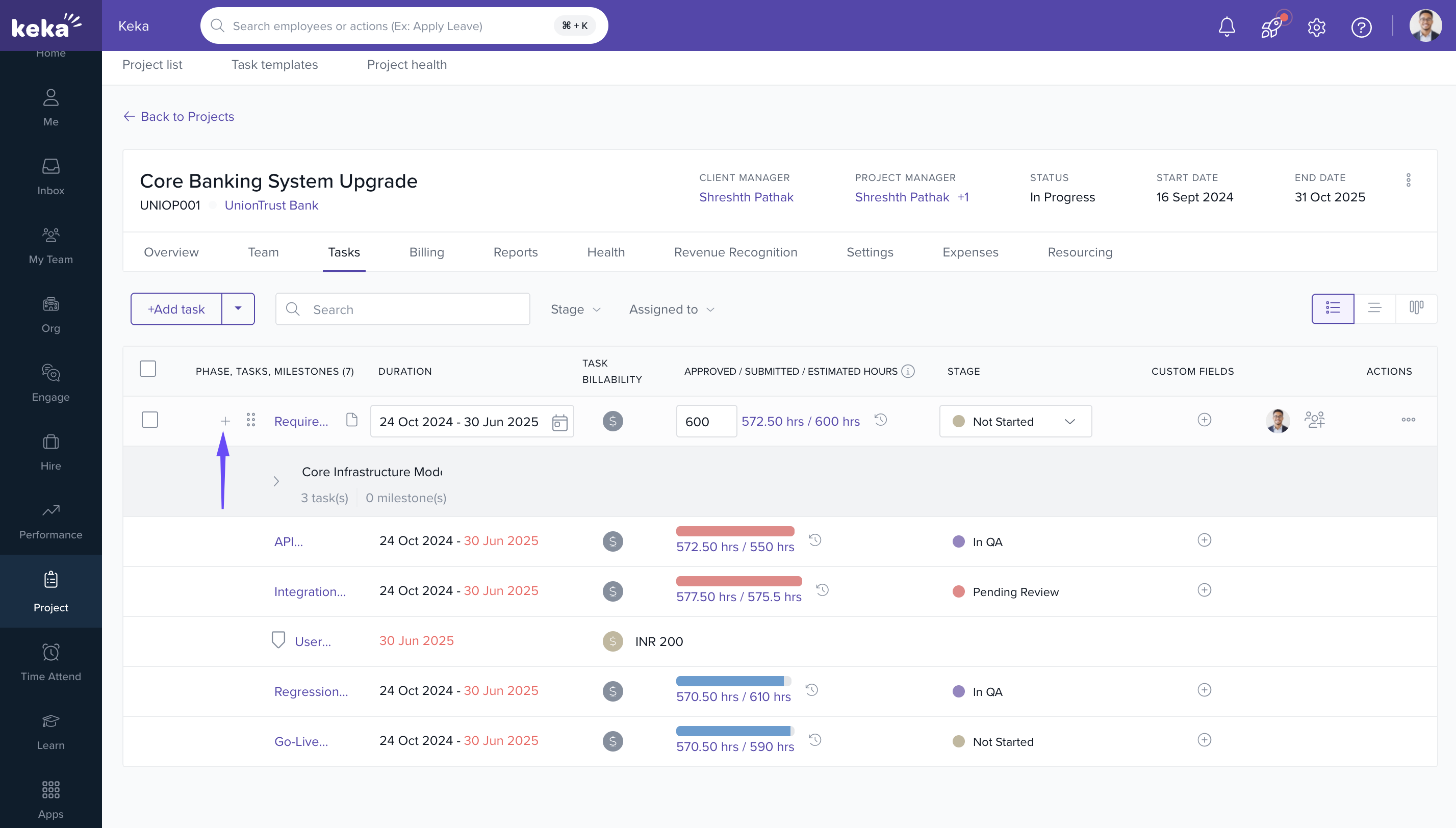 - On the project details page, click on the Tasks tab.