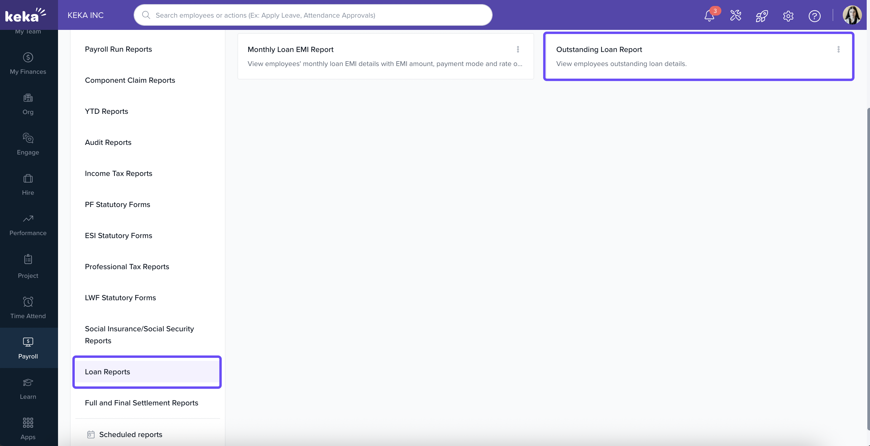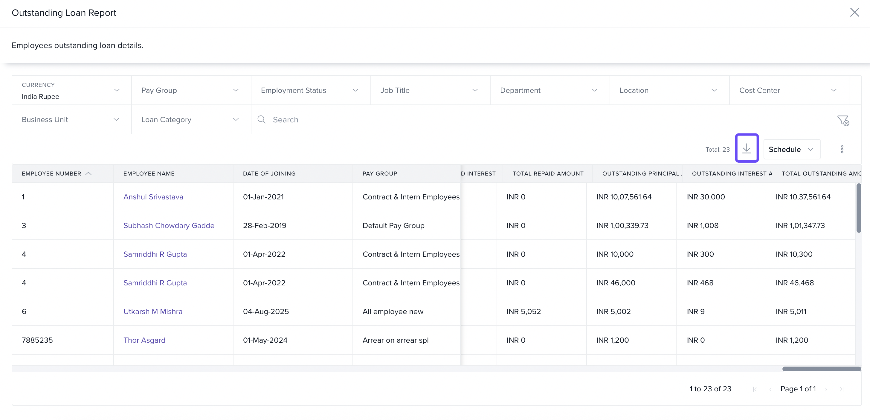 5. The report will open, displaying a list of employees with loan policies assigned.